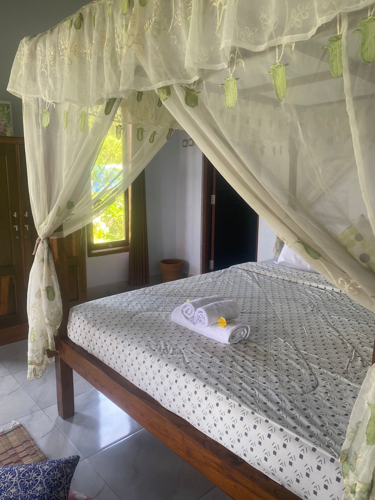 Our spacious and comfortable rooms have a queen-sized bed and provide hot and cold shower,wifi access,fan and Airconditioner . Breakfast is included. We are located just 700m away from Monkey Forest and a 10 minute walk away from Ubud center. Im also provide taxi service for pick up,drop off,day trips around Ubud: Rice terrace Holy water temple Coffee plantation Waterfall Elephant cave temple Sunrise trekking Water rafting Cycling tour Cooking class Etc Please asking me for more information:)