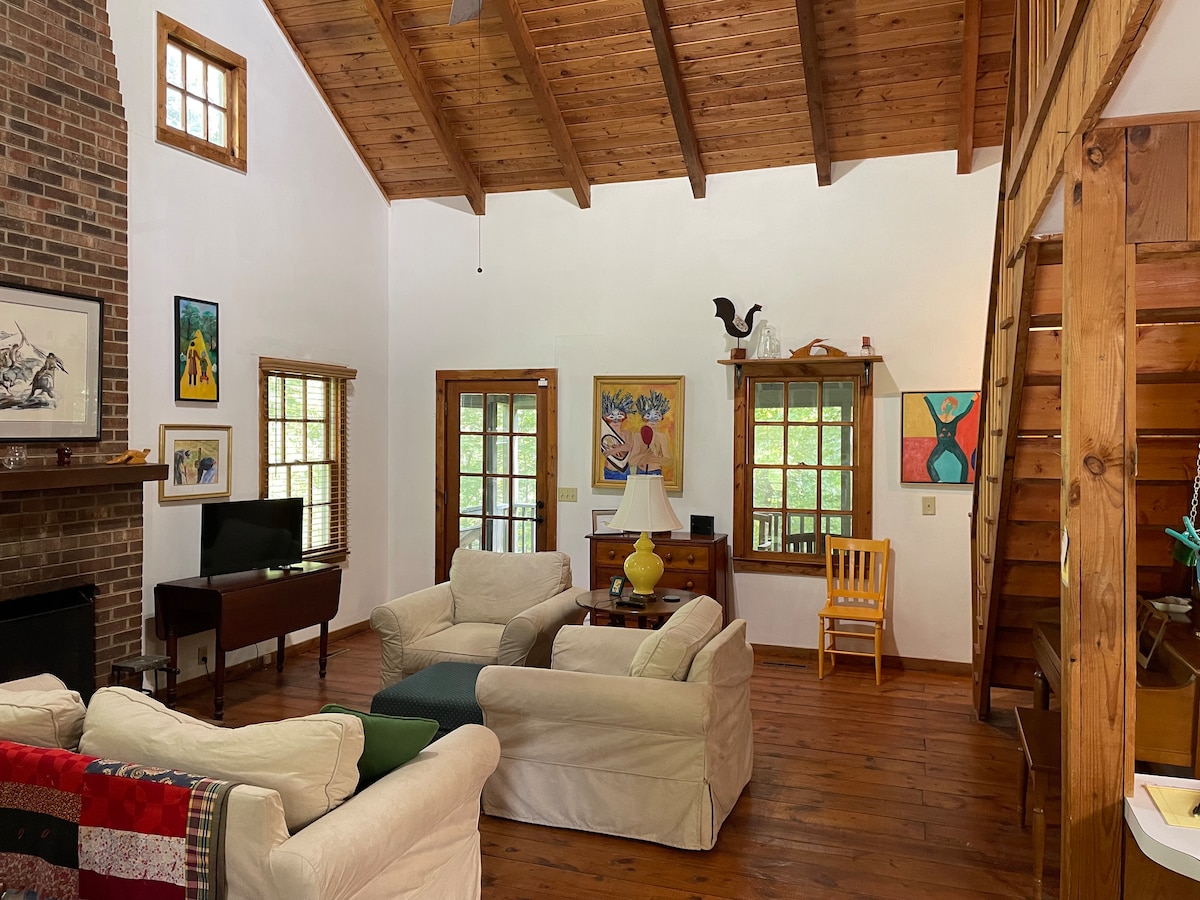 Retreat with us at the @rockingaframe Enjoy a getaway at our modern, cozy a-frame cabin just minutes from Hanging Rock. This 3 bedroom, 2 bath cabin is located on a secluded ridge (beautiful views) in Danbury, NC. Our cabin is only 3 miles from Hanging Rock State Park, voted by USA Today as one of the “20 Stunning State Parks Across the USA.” The Dan River (walking distance) is home to kayaking, tubing, fishing, and white-water; and Pilot Mountain State Park is just 20 miles away!