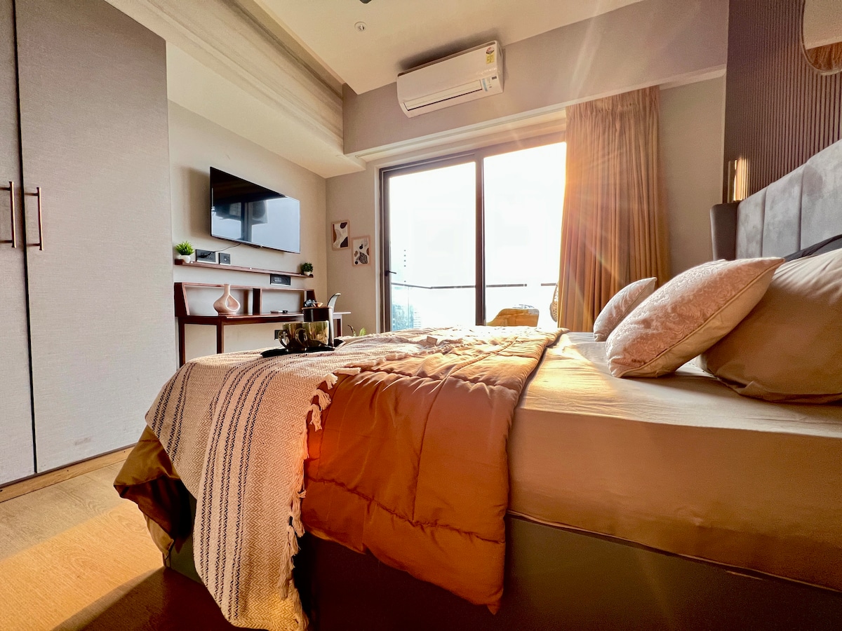 🌆 Retiro de lujo en un piso alto con vistas a la ciudad | Cerca del centro comercial Gaur City Disfruta de la comodidad, la privacidad y la vida elevada en este estudio bellamente diseñado. Ideal para parejas, viajeros solitarios y huéspedes de negocios, este espacio está cuidadosamente diseñado para ofrecer una estancia tranquila mientras te mantiene cerca de las principales comodidades, centros de negocios y destinos de estilo de vida. Ya sea que estés de visita por trabajo, una escapada corta a la ciudad o un fin de semana relajante, este departamento ofrece el equilibrio perfecto entre comodidad y lujo.