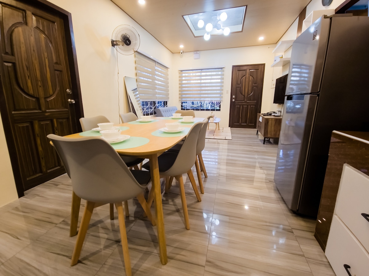 Reserva las 2 habitaciones: no las compartirás con otros huéspedes. Tu lugar de reunión perfecto para momentos íntimos con familiares y amigos (barkada). Disfruta de una casa adosada privada de 2 habitaciones cerca de SMX Lanang, ideal para 6–15 personas. Cuenta con una amplia sala de estar, cocina completa, wifi rápido, videokaraoke y 3 plazas de estacionamiento gratuitas. Puedes recibir visitantes durante el día para tu evento. Ubicado en Bajada, cerca de SM Lanang, Robinsons y el aeropuerto, es ideal para estancias, celebraciones y viajes de trabajo. 📍 Punto de referencia: Z3 Pharma