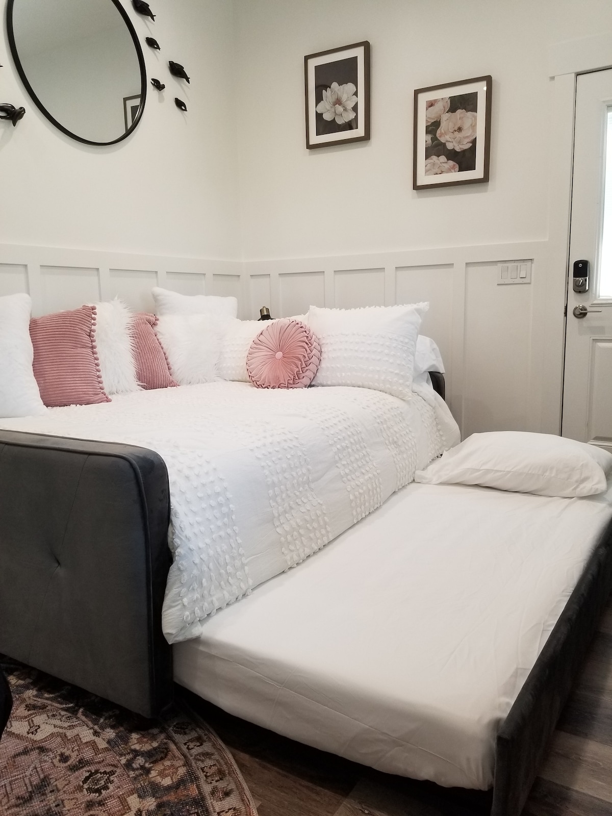 ¡Hola! 🙏🏼 • 4 colchones de espuma viscoelástica de tamaño completo nuevos… porque necesitas una gran noche de sueño. 💤 • Capacidad para 4 personas cómodamente y espacio adicional si alguien comparte.💤 •Disfruta de la cocina, el baño y las salas de estar totalmente renovados, justo lo que necesitas, nada que no necesites. ☝🏼 • ¡Desconecta en el relajante espacio del sofá con una pantalla de gran tamaño para tu película o serie favorita! • Wifi complementario. • Código de entrada sin llave.🔑 • Aparcamiento gratuito en el camino de grava (2 X🚗). • Entrada independiente, entra y sal a tu antojo. 💫 Disfruta tu estadía🙏🏼