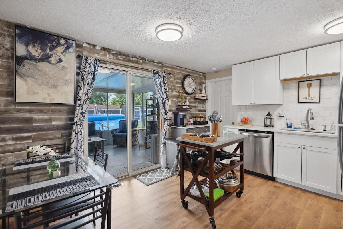 ¡Esta maravillosa, espaciosa y remodelada casa es el alojamiento perfecto en la zona de Dayton! Tanto si te hospedas una noche como si te hospedas varias, te ofrece un ambiente excelente junto con un barrio seguro y familiar. Esta belleza te ofrece todo lo necesario para que te sientas como en casa, con camas y sábanas nuevas, wifi, televisores y una gran cocina nueva. Cerca del acceso a la autopista. Cerca de WPAFB, Museo AF, Universidad de Dayton, Hospital MV, Universidad WSU, tiendas y restaurantes, etc.