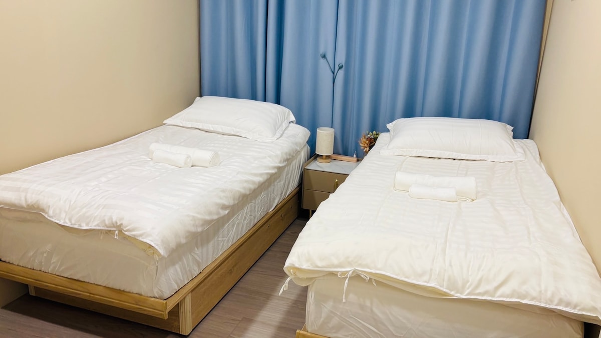 Exquisitamente decorado y cómodo, fácil de usar, espero darte las comodidades de un hogar🌸✨ Transporte conveniente, el tren de alta velocidad de Taoyuan y el aeropuerto A18 están a pocos pasos. Tiempo de caminata: IKEA: a🚶 unos 5 minutos. Estación de tren de alta velocidad de Taoyuan:🚶 unos 10 minutos Huatai Outlet: a🚶 unos 12 minutos Descripción del alojamiento: dos dormitorios más una sala de estar, barra de cocina, perfecto para una familia, amigos para cocinar juntos La casa tiene un balcón trasero con buenas vistas y buena iluminación Hay dos habitaciones y un baño. Hay un espacio de estacionamiento plano con un límite de altura de 2,1 metros, y también hay un espacio de estacionamiento para motocicletas ⚠️Nota: Hay dos dormitorios en la propiedad, Sin embargo, cuando el número de huéspedes sea 1, solo una habitación estará disponible y la otra estará cerrada. 2-4 personas, ambas habitaciones estarán abiertas El precio para 2, 3, 4 personas es diferente, los usuarios pagan, si no puedes aceptar, no reserves (más una habitación + TWD 800 $) Toda la casa, la sala de estar y la cocina son privadas y no se compartirán con otras personas. No podemos alojar a huéspedes que solo puedan hacer el check-in después de las 10:00 p. m. Damos la bienvenida personalmente a cada huésped para que se registre debido a problemas de seguridad y normativos, por lo que te preguntaremos sobre la hora de llegada cuando reserves y no podemos aceptar ningún cambio. No reserves si no puedes alojarte. Edificio nuevo, algunas casas no se han completado, el ascensor tiene capas antiarañazos y anticolisiones, el vestíbulo del ascensor puede tener escombros. 🙅🏻♀️Si no puedes aceptar ninguna reservación El límite de ocupación de una sola propiedad es de 4 personas. Si son más de 4 personas, consulta en privado