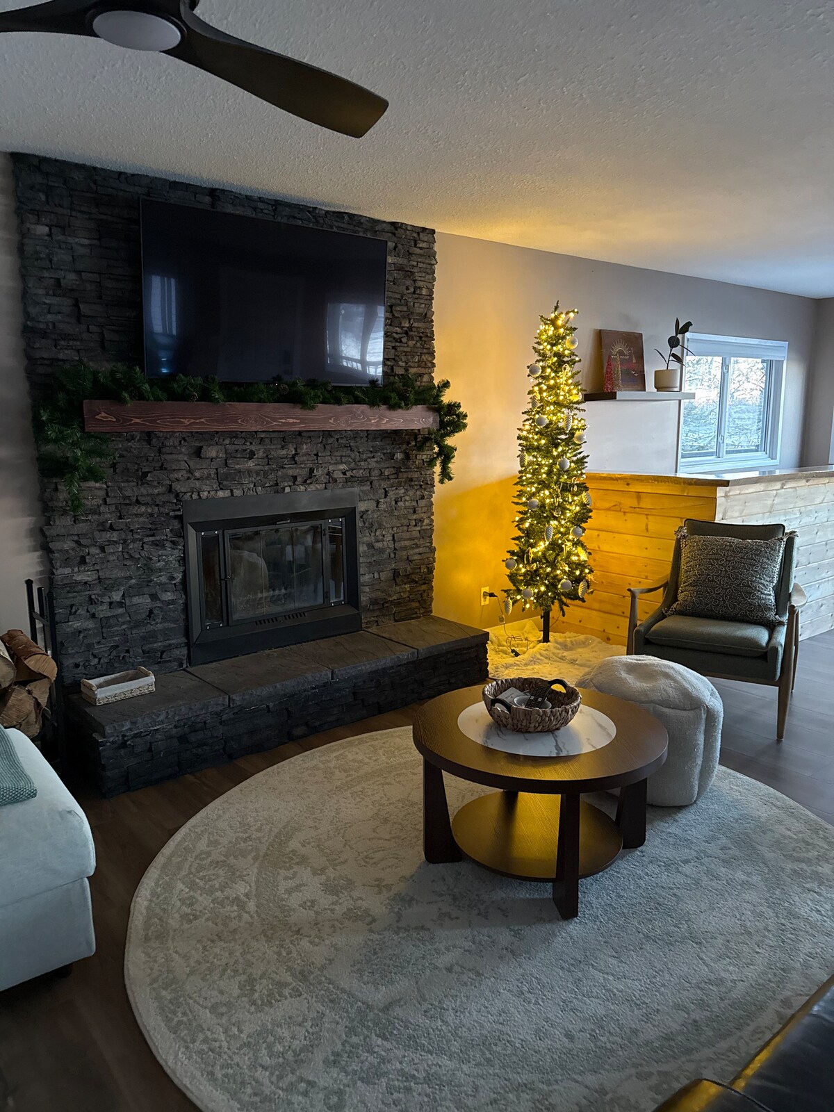 Relax with the whole family at this peaceful log cabin nestled in the trees. Spend your nights roasting marshmallows under the stars in your private backyard and your mornings sipping coffee on the covered patio. Beautiful Morin Lake's public beach is just a short 10 minute walk down the road. Keep the kids busy at the park, take a stroll to The Grill for ice cream, or launch your boat to spend a day fishing or floating at the lake. This place can't be beat!