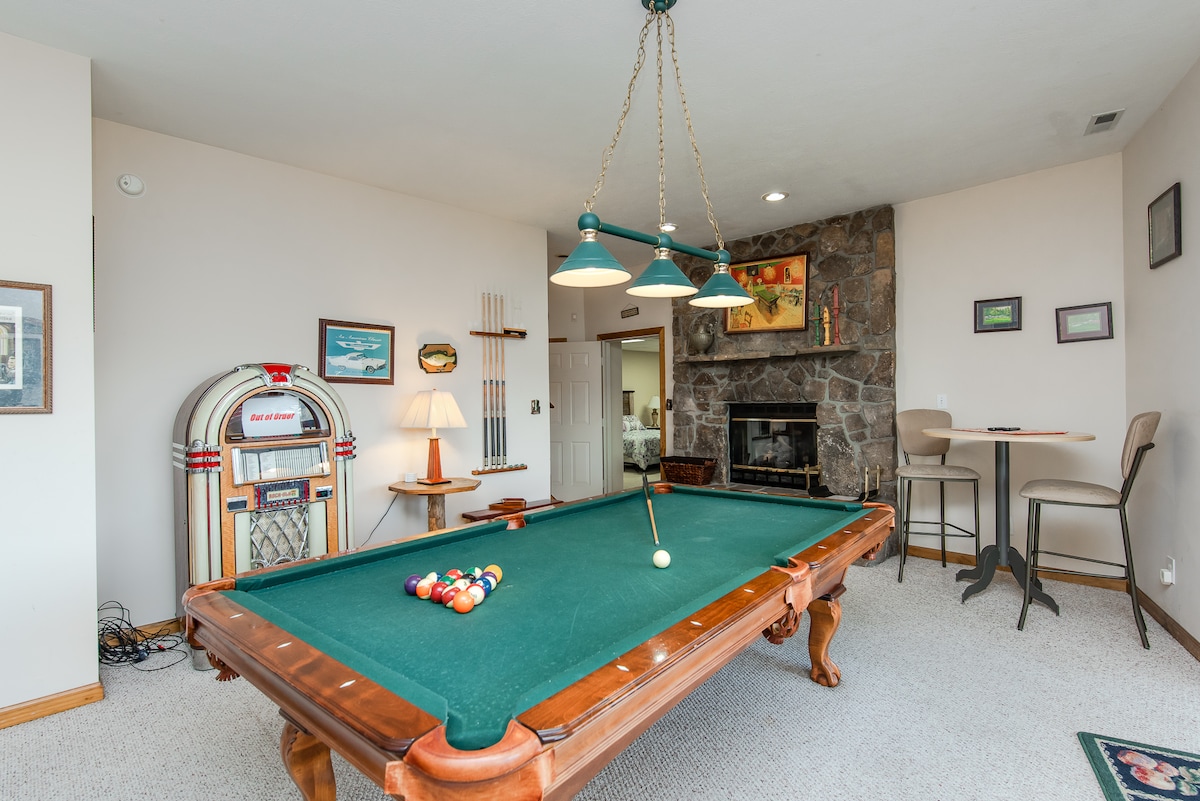 🎉 Descuentos: ¡ahorra entre un 8 % y un 10 %! ¡Reserva con más de 6 meses de anticipación, quédate más de 1 semana! ¡✅A poca distancia a pie del lago! Mesa de✅ billar, dardos, mesa de juegos multiusos, juegos de mesa, cartas. ✅Amplio espacio de estacionamiento ¡El acceso al✅ lago desde el muelle del vecindario es un beneficio adicional!*camas acogedoras terraza ✅grande ✅Jacuzzi mesa de comedor✅ enorme ✅hacer s'mores en la fogata ✅pasear por el tranquilo vecindario ✅Relájate/observa la vida silvestre caminar por el patio. ¡✅Los televisores en todas las habitaciones ofrecen entretenimiento para todos!