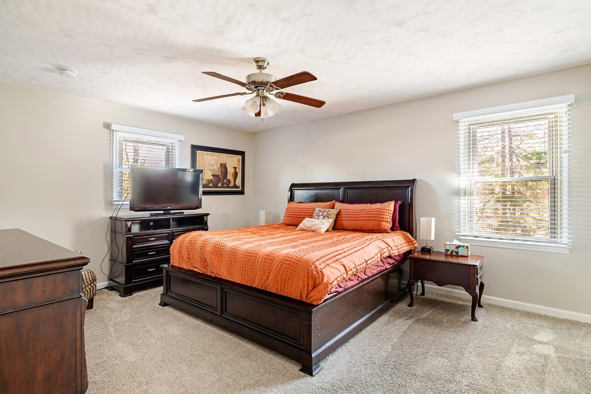 The lake house is located in the center of Greensboro, just 5 min. from the best restaurants, shopping, parks and event centers in town, including Greensboro’s premiere Friendly Shopping Center. Wesley Long Cone Hospital is a 5-7 min. drive. It’s 35 min. from High Point's Furniture Market and 10 min. from GSO Airport. The Aquatic Center, Natural Science Center and many local colleges including UNCG, Guilford College, A&T are close. Even Elon, High Point Univ. and Wake Forest are 30 min. away!