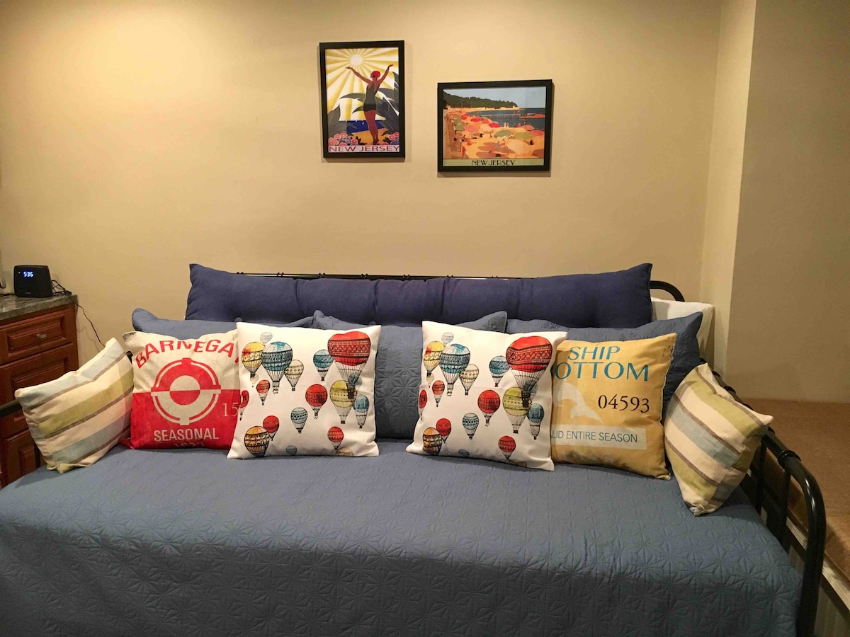 Nuestra habitación Queen, informal y acogedora, está a 1 manzana de la playa y del paseo marítimo OCNJ. Tu habitación es luminosa y tiene su propio baño privado pequeño, aire acondicionado con control individual, TV de pantalla plana y mininevera. Como parte de nuestra posada boutique vintage, el Zenneth Manor, ofrecemos servicio de limpieza diario, aparcamiento gratuito en el lugar y etiquetas de playa de cortesía en temporada. Nuestra posada restaurada de 1950 es una escapada clásica a la playa a la que le hemos inyectado un estilo relajado y sencillo.