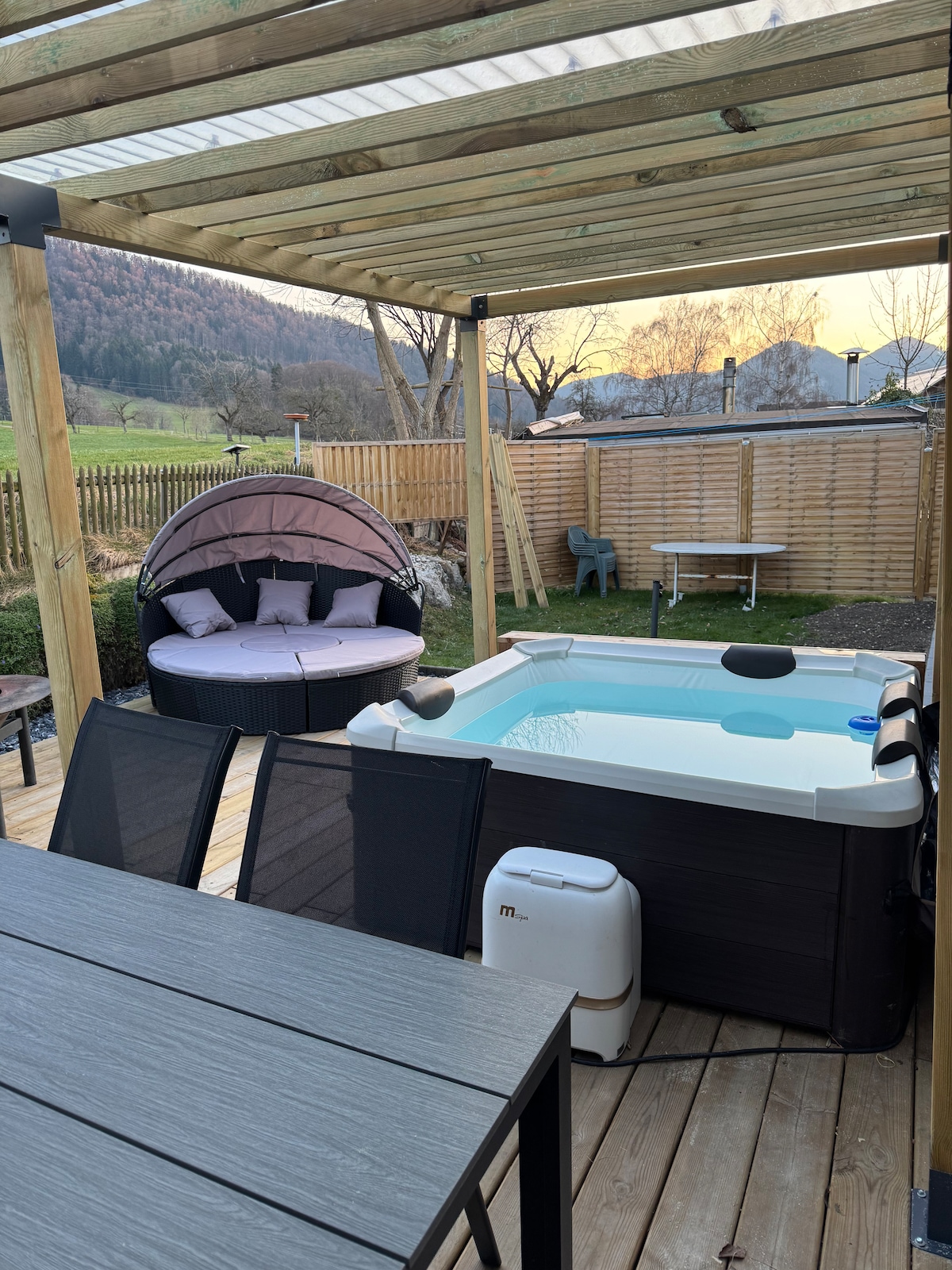 Situé au pied du Raimeux, ce chalet est idéal pour se ressourcer en pleine nature. Niché dans un environnement calme, il offre une vraie pause loin du quotidien. Profitez du jacuzzi privé avec vue sur le Raimeux et les montagnes environnantes. Parfait pour un moment de détente ou un week-end bien-être. Le logement convient pour un couple, une famille ou un groupe d’amis souhaitant partager un moment dans un cadre apaisant. Que vous aimiez les balades ou le calme, ce chalet saura vous séduire.