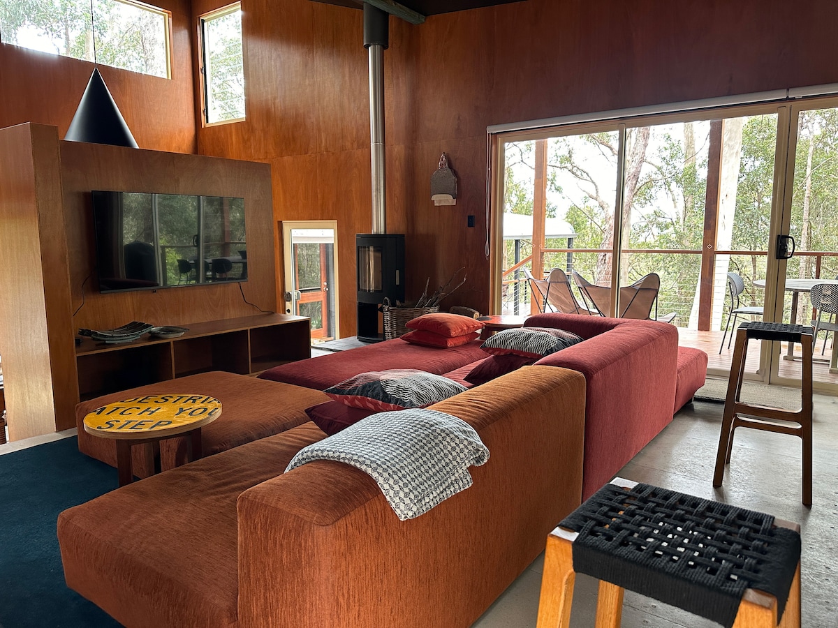"Deep South" is a delightful A-frame cabin where time slows... Perfectly positioned between the town centre of Denmark, towering Karri trees and beautiful Ocean Beach, you will be welcomed by a nostalgic 1970s A-Frame filled with bursts of colour and bespoke interiors. An ideal getaway for couples or a small group, you can spend the days exploring the rugged coastlines, walking incredible trails or visiting the local wineries, before retreating home to enjoy our cosy cabin.