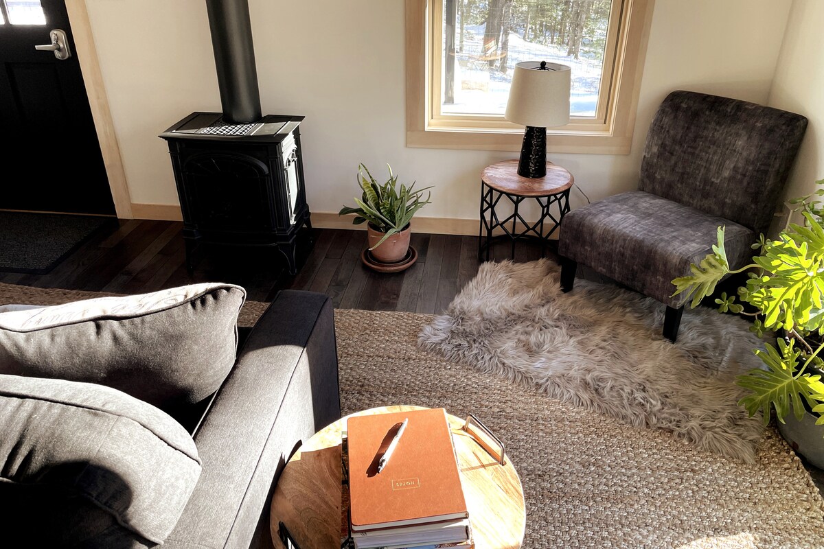 A 2,5 horas en coche de Nueva York se encuentra una casa serena, privada, junto a un arroyo y rodeada de bosques. Esta cabaña se encuentra en el mismo borde de las montañas Catskill. Es acogedora, moderna y minimalista con un toque de elegancia rústica. Todos los electrodomésticos nuevos con todas las necesidades de cocina, una cómoda cama con TV inteligente de pantalla grande, excelente servicio wifi, una romántica chimenea de gas y la terraza trasera más privada lejos del mundo para perderse durante un fin de semana en la belleza del bosque.* ¡Ahora ofrecemos ofertas de precios a mitad de semana!