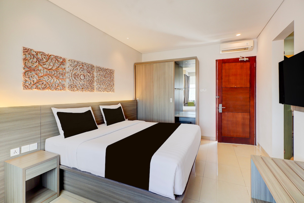 La habitación cuenta con una cómoda cama, un sofá cama para un huésped adicional y comodidades esenciales para una estancia relajante. Ya sea que estés aquí para una escapada corta o larga, nuestra habitación Deluxe es la base perfecta para tu aventura en Bali. Ubicado a 10 minutos del Aeropuerto Internacional Ngurah Rai y también a poca distancia a pie del supermercado, varios restaurantes económicos, lugares de entretenimiento y algunas tiendas de recuerdos famosas, como Joger y Krisna.
