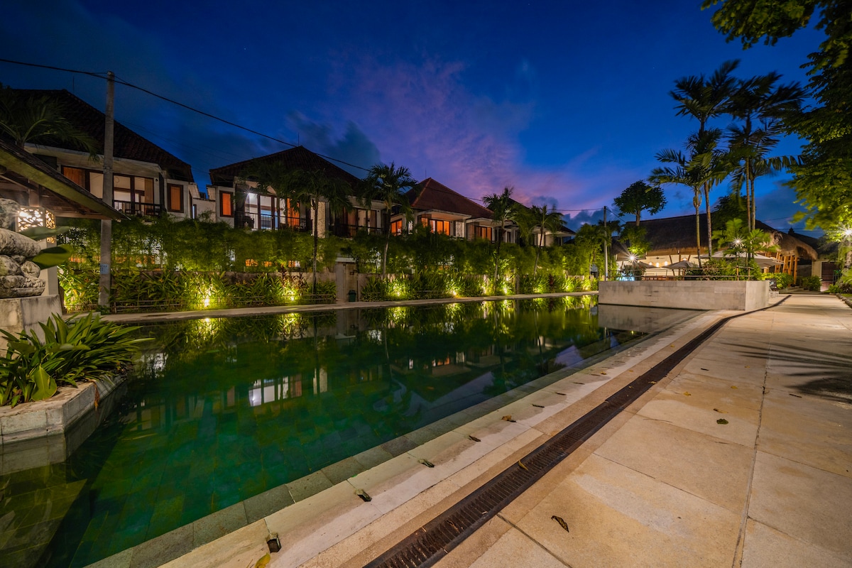 Ubicado en el exclusivo complejo Nusa Dua Resort, nuestro lujoso apartamento familiar de 2 dormitorios y 2 baños con vistas a la piscina y aire acondicionado forma parte de un complejo de 4 estrellas administrado internacionalmente (Novotel) que ofrece instalaciones completas para satisfacer todas las necesidades de vacaciones de tu familia.