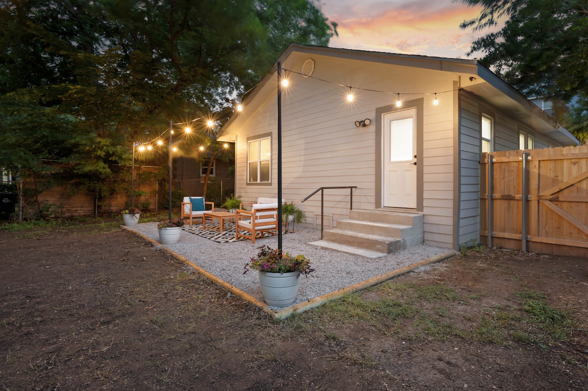 Disfruta de tu mejor estadía en esta propiedad histórica con actualizaciones modernas a solo dos cuadras de Denton Square. Comodidad caminable para la Universidad del Norte de Texas, nuestro mercado comunitario, la fantástica vida nocturna y los restaurantes que Denton tiene para ofrecer. La comodidad ecléctica será un punto culminante de tu estancia con una cocina moderna, un baño digno de desmayos con agua caliente interminable y cabezal de ducha con cascada. Es verano y el jardín es simplemente hermoso. Es hora de relajarte y disfrutar de una estancia mágica dentro y fuera.