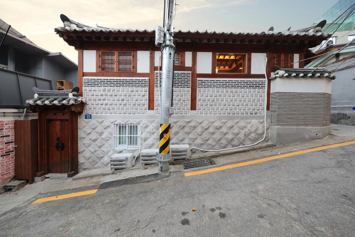 NuileStay es un acogedor hanok que combina tradición y comodidad, en un lugar privilegiado con fácil acceso a todo Seúl. Un patio tranquilo y un hanok en forma de “ㄷ” te dan la bienvenida. Las ventanas del piso al techo enmarcan la lluvia o la nieve, y el interior combina el encanto atemporal con la comodidad moderna. - A 7 minutos a pie de Gyeongbokgung. - A 5 minutos del autobús del aeropuerto. - YouTube / Netflix premium gratuito. - Lavadora y secadora (LG). - Fácil acceso a Myeongdong, Insadong, Namsan, mercados - 2 dormitorios, 2,5 baños. - Calefacción/aire acondicionado individual en cada habitación.