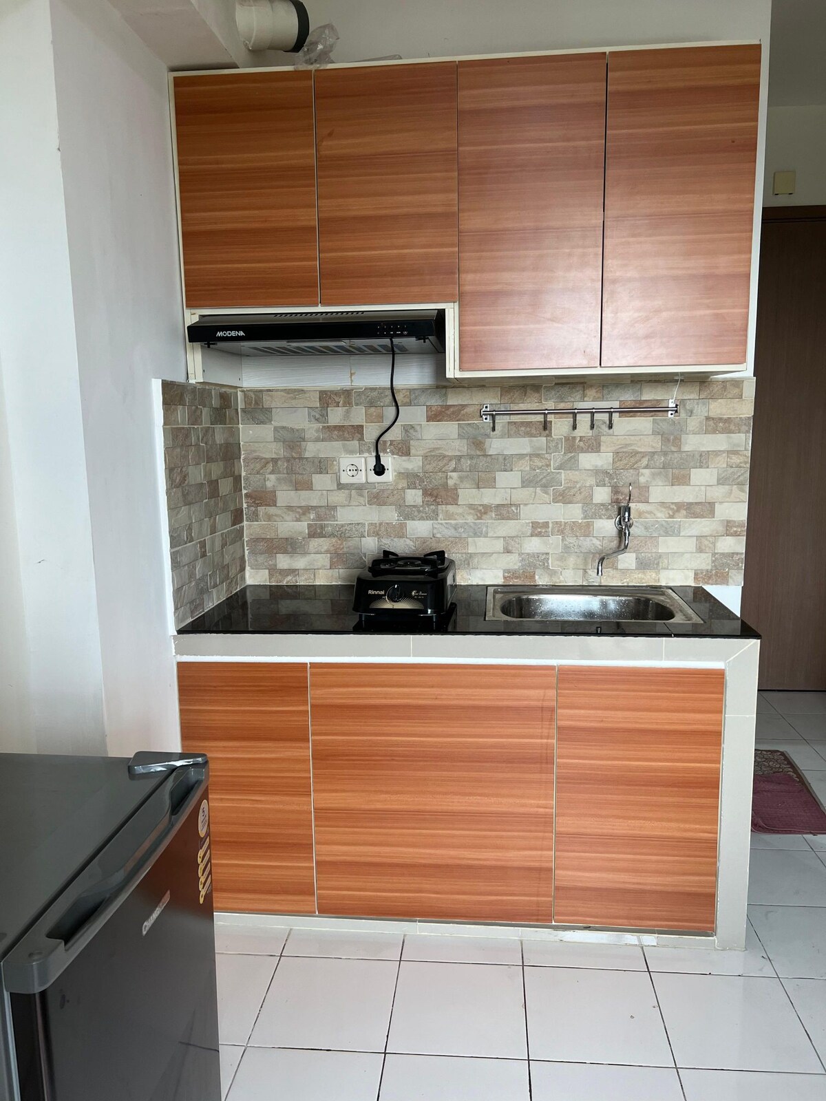 Sencillo en este lugar tranquilo y céntrico. El lugar está muy cerca del campus de Universities dan. Ubicado en Jalan Margonda, el lugar más popular en Depok City; hay un restaurante muy asequible pero delicioso cerca. Instalaciones: Aire acondicionado Televisión analógica + set top box de TV digital Refrigerador Cocina con 1 estufa Cama matrimonial Vestuario Espejo Escritorio de trabajo