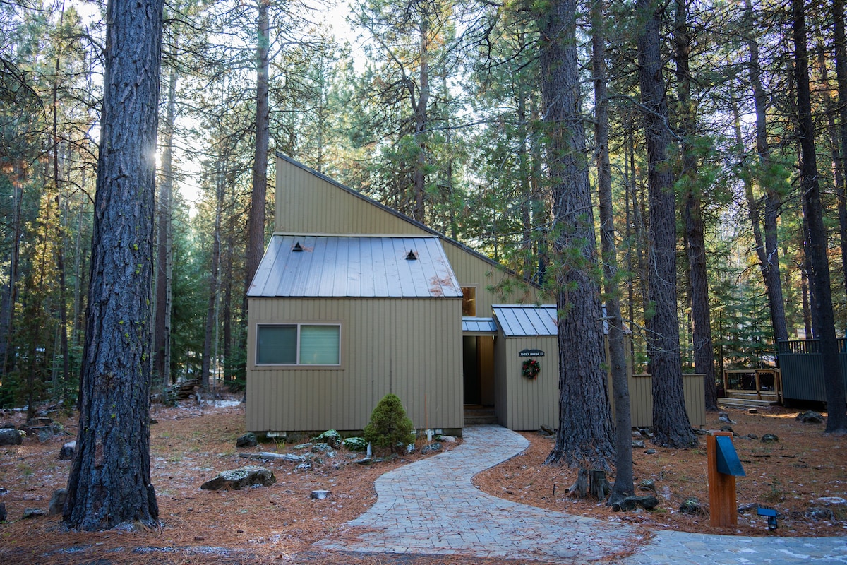 Ubicada en Black Butte Ranch, esta cabaña vintage de los años 70 recientemente renovada cuenta con todas las comodidades modernas de un hogar. TV inteligente, wifi, parrilla para barbacoa y chimenea acogedora. Esta cabaña de 975 pies cuadrados cuenta con un plano eficiente y cómodo. Dos dormitorios y un baño en la planta principal con un tercer dormitorio en un loft semiprivado en la planta superior. Nuevos electrodomésticos y utensilios de cocina básicos en la cocina. Hacemos todo lo que está en nuestra mano para mantenerla abastecida con especias, aceites y condimentos comunes. ¡Registro de entrada a las 14:00 h! ¡Tarifas del centro vacacional incluidas en mi tarifa!