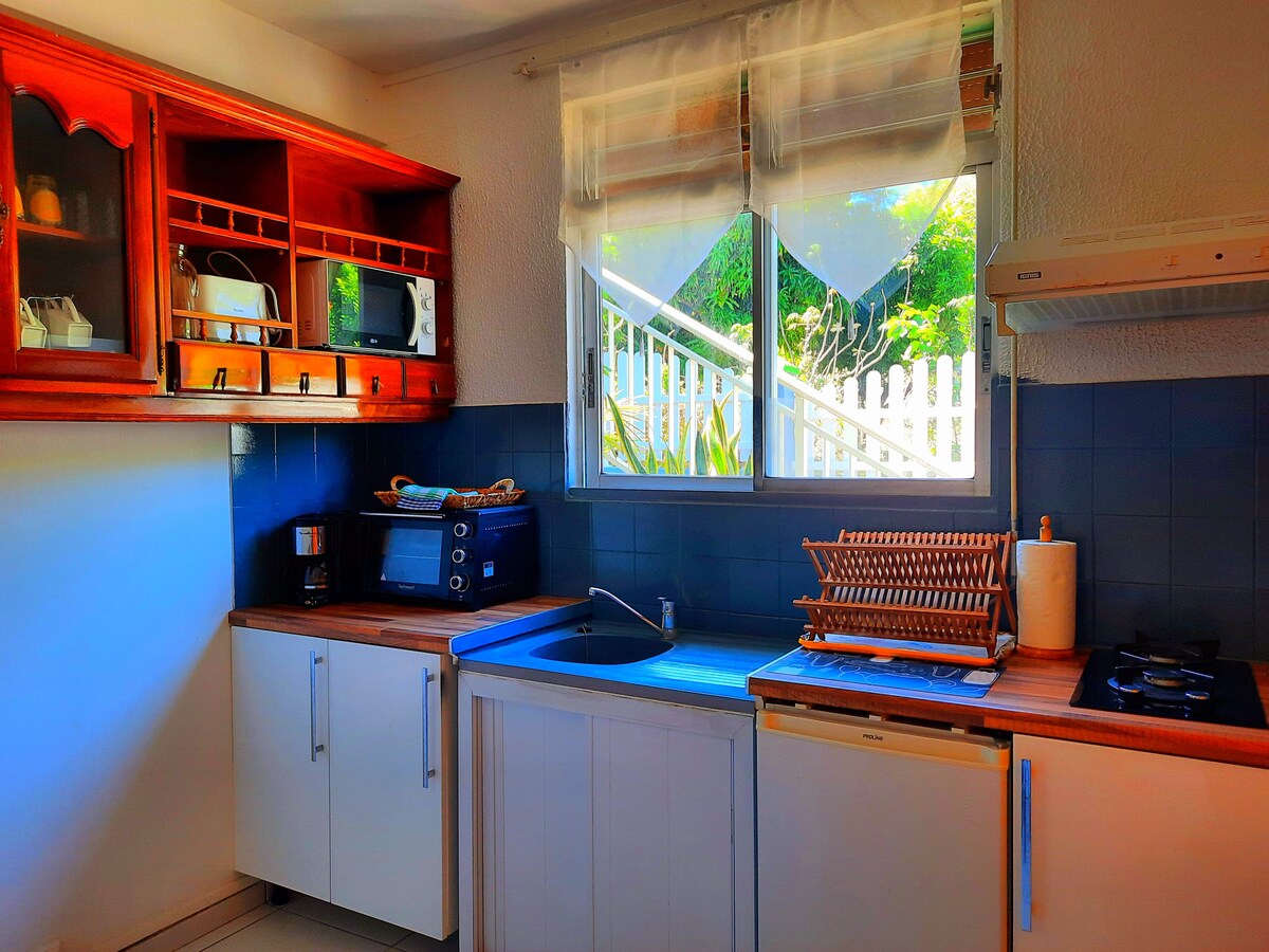 Nuestro bungalow está situado en el corazón de un jardín criollo, frente al archipiélago de Saintes. Ofrece tranquilidad y frescura cerca de las playas y los ríos del sur de Basse-Terre. el acceso a la piscina, a la casa principal y al estacionamiento se realiza a través del jardín (15 a 20 m). ¡Estaremos encantados de recibirlo a su llegada alrededor de un bote de bienvenida!