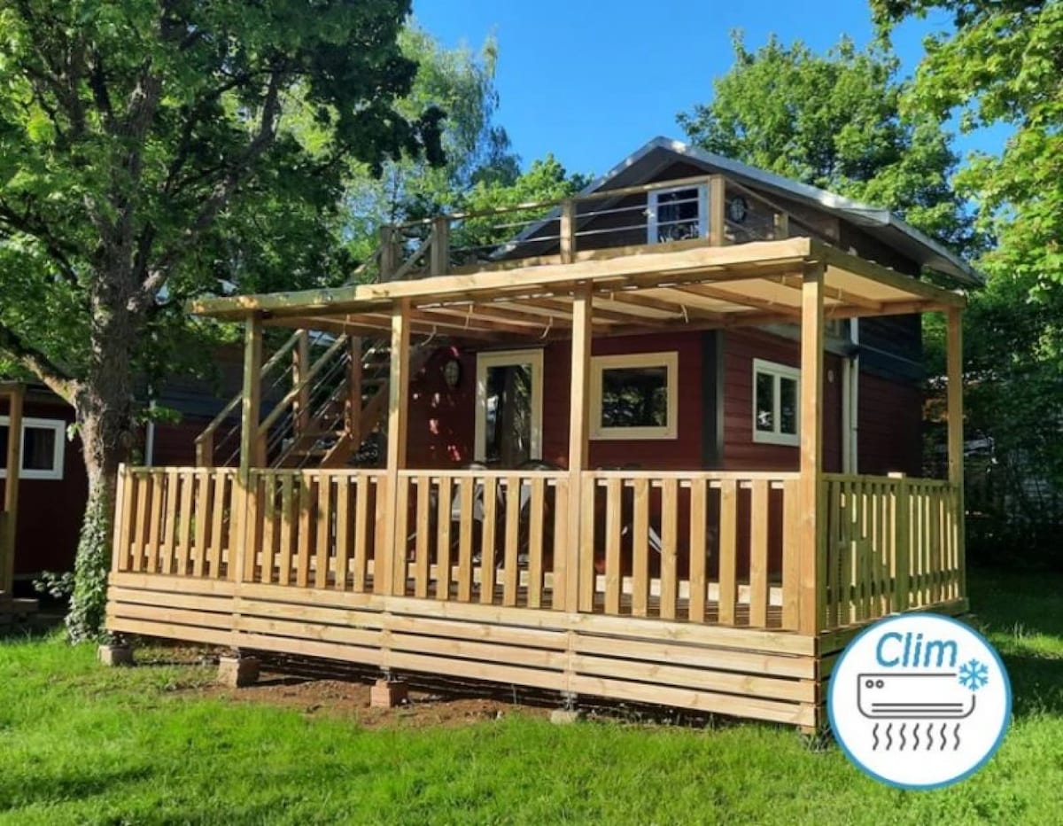 Este alojamiento tranquilo ofrece una estancia relajante para toda la familia. Bonito chalet de madera con terraza, situado en el campo y a 30 minutos de Le Puy du Fou. Esta pequeña cabaña, totalmente equipada, está llena de encanto para vivir una experiencia original.En el exterior se encuentra un gran jardín arbolado de 1600 m², El Bioparc de Doué La Fontaine. A 45 minutos: Saumur para visitar su castillo, A 1 hora: Nantes, Angers, Sables d'Olonne o Pornic.