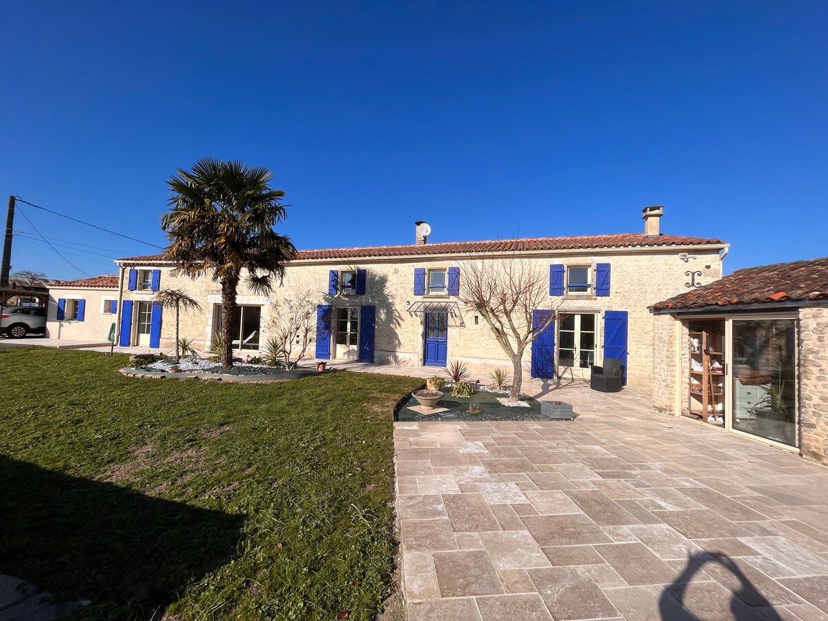 Eric y Julie te esperan para darte una cálida bienvenida. Ubicado en el centro de Poitou Charentes. Este tradicional logis se encuentra en la hermosa campiña que rodea el valle de Boutonne, cerca de los servicios locales en la popular ciudad comercial de Chef Boutonne. Originalmente construida como una casa señorial con viñedo a mediados del siglo XIX, este imponente Logis se convirtió más tarde en una granja en funcionamiento y más recientemente restaurada para proporcionar una maison de maitre independiente y cuatro Gites independientes de calidad.