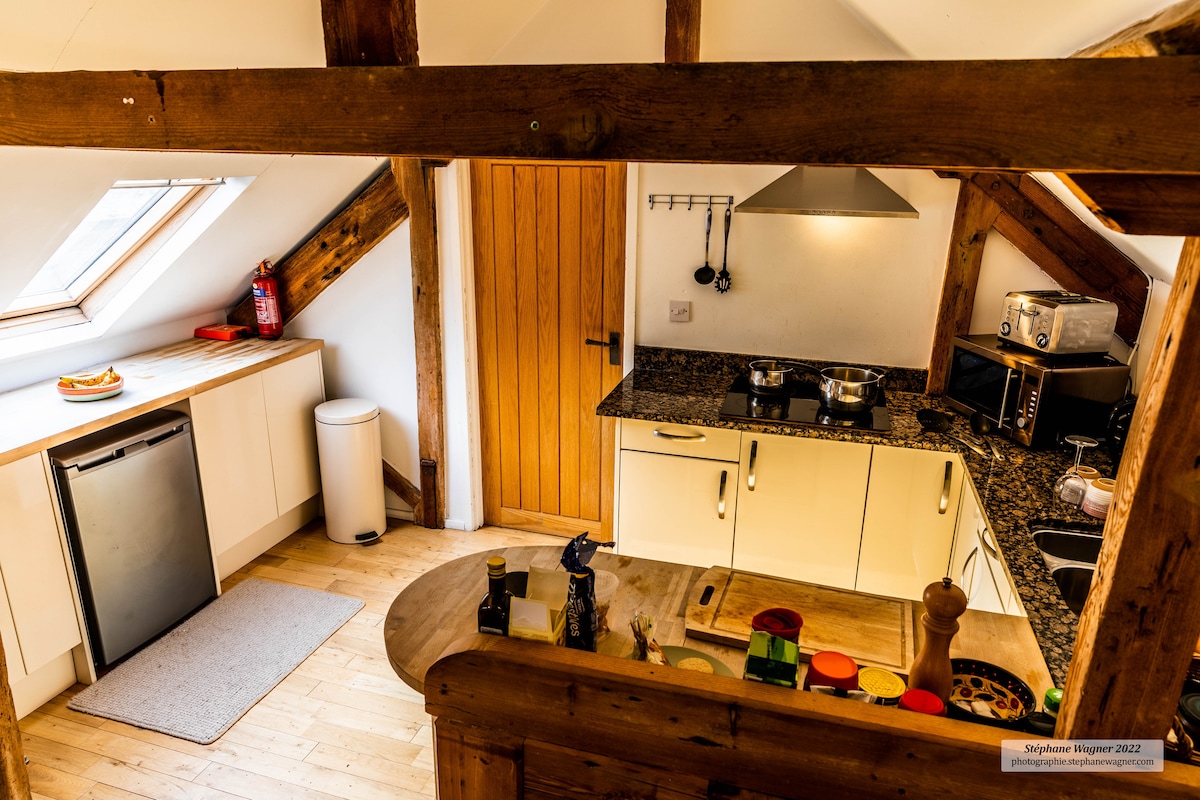 Este peculiar espacio independiente de madera consta de una cama doble y es ideal para dos personas, pero puede alojar hasta cuatro si se utiliza el sofá cama doble. Situado en el corazón de Devon, el apartamento tiene una cocina pequeña, sala de estar y dormitorio combinados y un aseo y ducha separados. Al apartamento se accede por escaleras y no es apto para personas con problemas de movilidad. Hay un televisor inteligente, DVD y sistema de música, pero no internet. Este espacio es para no fumadores. Hay muebles de jardín, barbacoa desechable y juguetes disponibles.