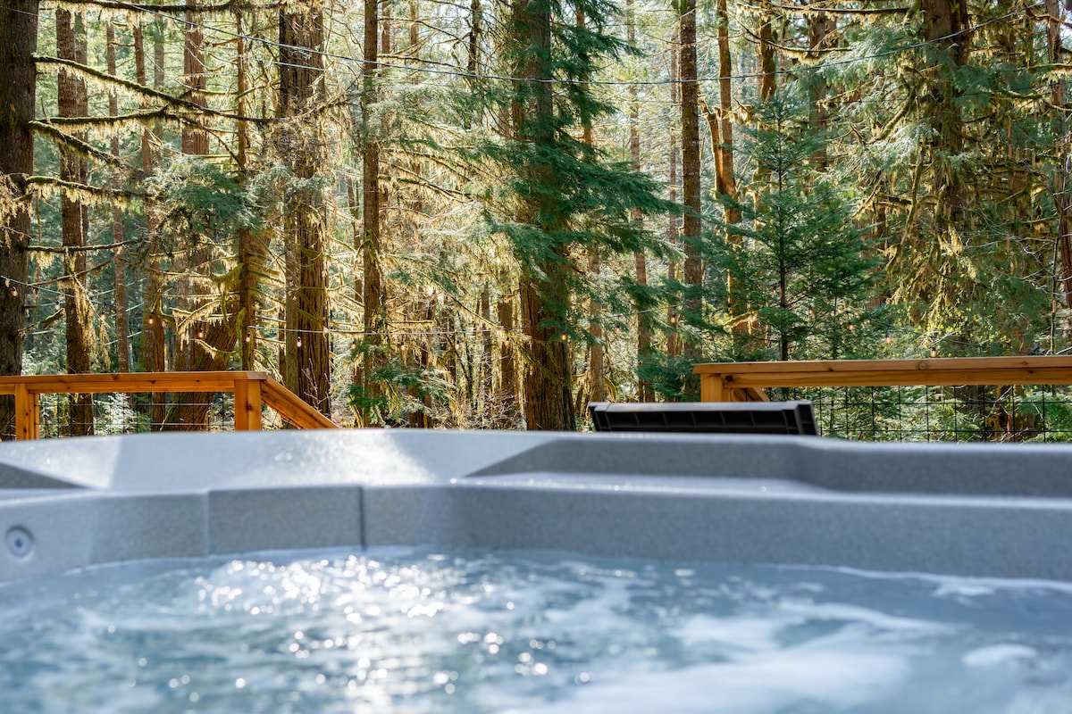 Escápate a una cabaña estudio privada junto a un arroyo para un máximo de 4 huéspedes. Este sereno escondite cuenta con una bañera de hidromasaje cubierta, una amplia terraza con parrilla y una ducha al aire libre única. Perfecto para una escapada romántica o una pequeña aventura familiar cerca del río McKenzie, ofrece un espacio de trabajo dedicado, conexión Wi-Fi de alta velocidad y cocina totalmente equipada. Disfruta de un aislamiento tranquilo con comodidades modernas.