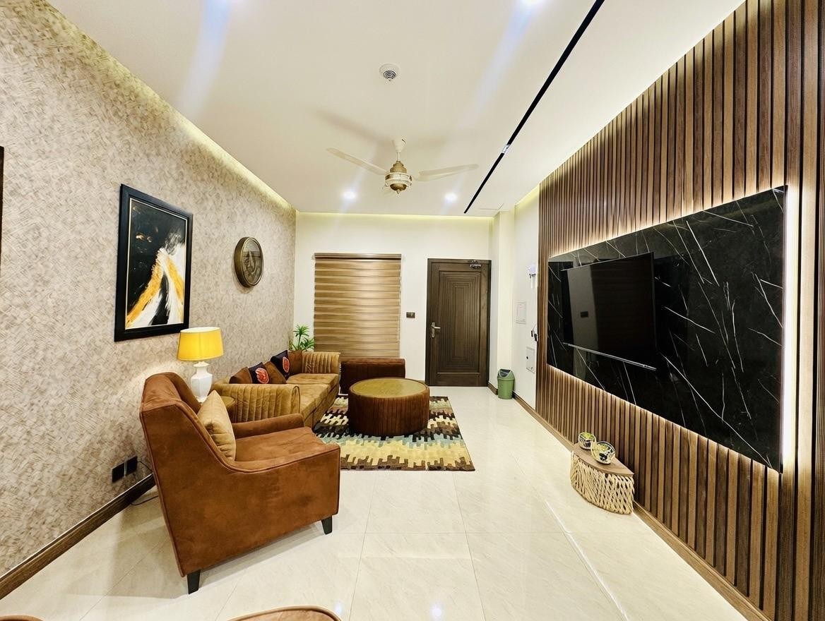Olvídate de tus preocupaciones en este espacio espacioso y sereno. El espacio Bienvenido a tu hogar lejos de casa: un apartamento de 1 dormitorio bellamente diseñado ubicado en el corazón de DHA Phase 2, Islamabad. Disfruta de una combinación perfecta de comodidad, estilo y conveniencia, a pocos pasos de Giga Mall, Central Park y Islamabad Highway. Nuestros departamentos cuentan con: • Wifi de alta velocidad y TV inteligente • Seguridad y respaldo de energía las 24 horas, los 7 días de • Estacionamiento privado