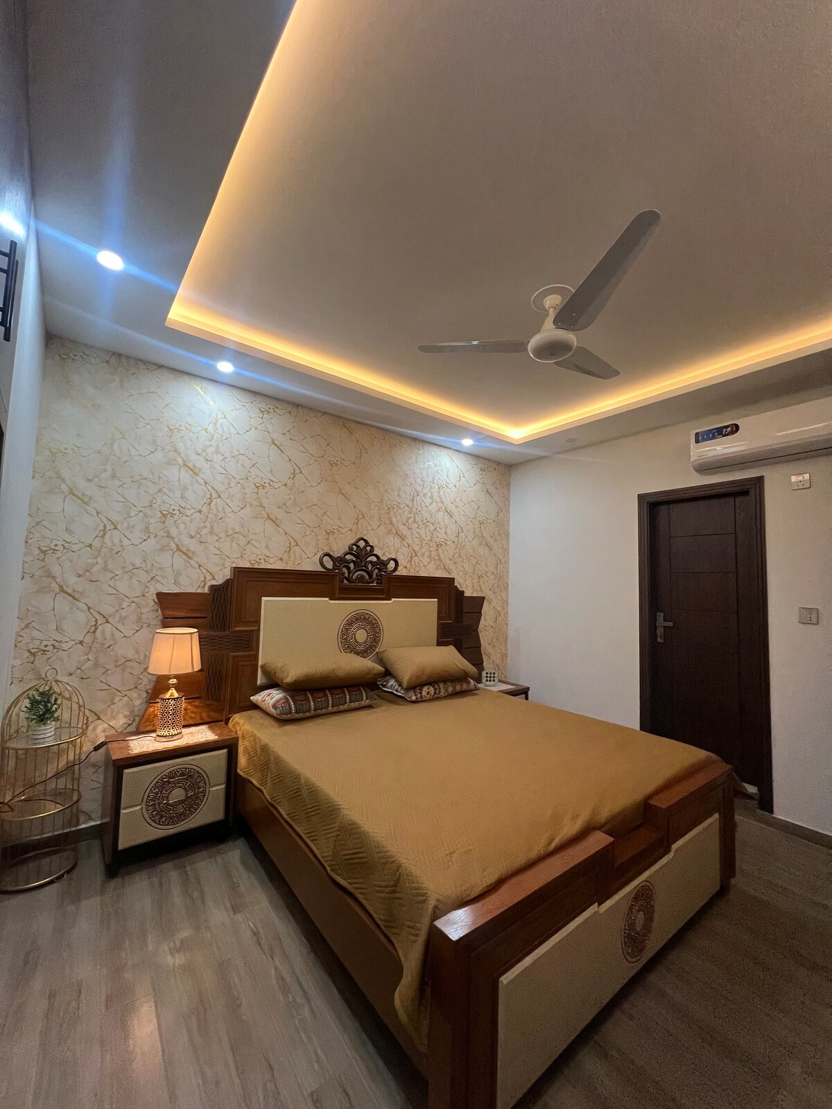 An ultra luxury 2 bed cow boy themed apartment. We offer a wide range of facilities. King size beds Jacuzzi (LED in the bathroom) Snooker BBQ station Home Gym Cinema Bedroom (4K projector and star light ceiling) Massager chair 75” QLED in living room 55” QLED in the bed room Netflix and chill Outdoor sitting for 8 people Complementary snacks, drinks, coffee, tea and green tea. Complementary bathroom amenities Complementary cleaning available for the longer stays. Fully equipped kitchen.