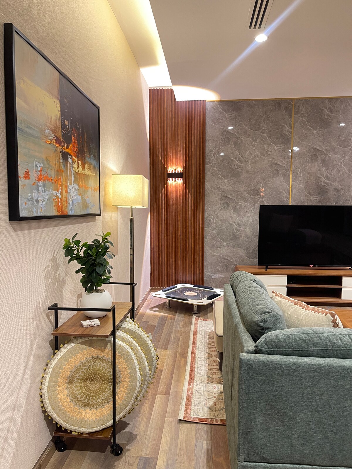 Este apartamento limpio y cómodo es ideal para parejas, viajeros solitarios o huéspedes de negocios que buscan una estancia limpia y tranquila. Diseñado para la comodidad, el alojamiento está equipado con un cómodo sofá Bella de Mutlaq Furniture, una red wifi de alta velocidad, un televisor inteligente y una cafetera Nespresso. Acceso de los huéspedes Fácil acceso al apartamento de arriba con cerradura digital de la puerta Otros aspectos a destacar Este es un edificio residencial y un barrio tranquilo. Por favor, ten en cuenta los niveles de ruido al llegar y salir. No se permiten eventos ni fiestas en absoluto.