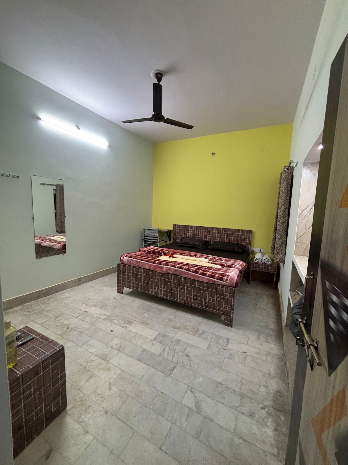 Located at a walking distance from Banaras Railway Station(BSBS )! Relax in bright, spacious Bedroom with private bathroom and Living Room. Explore nearby gems like Assi Ghat (3.8 km), BHU (4 km), Kashi Vishwanath Temple (4.6 km), Sankat Mochan Hanuman Temple (3.7 km) and Sarnath (11.8Km). Local markets, eateries, and shops are just a stroll away. Enjoy fast WiFi, and power backup for a cozy, hassle-free stay—perfect for families and couple friendly.