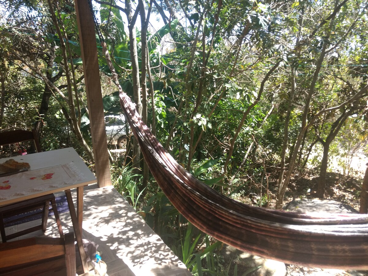 Es una casita construida en permacultura, con cama doble, baño completo, ducha caliente, enchufes, ventilador, mosquitero, en medio del bosque de la montaña, muy cerca de cascadas, cuevas y pinturas rupestres. Con cocina colectiva a disposición y zona social cubierta con mesas para trabajar/estudiar y comer. Una propuesta de calidez sencilla en medio de la naturaleza. Además, contamos con un servicio de cantina casero que sirve comida de Minas Gerais, pasta y pizza a precios populares.