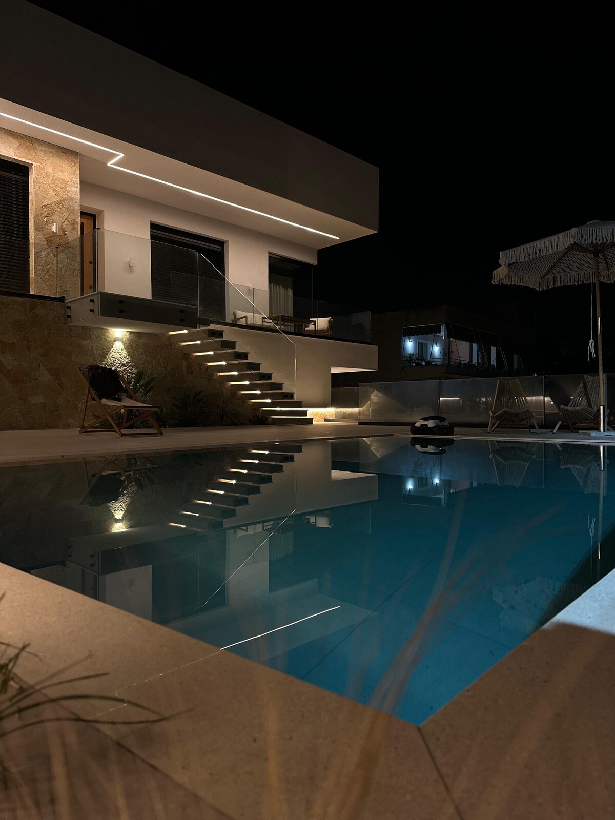 Just minutes from Tirana’s vibrant center, Vog villa offers a serene escape filled with warmth and comfort. Spacious, sunlit rooms open to a private garden where tranquility meets style. Enjoy a refreshing swim in the heated pool, relax by the inviting fireplace, or dine under the stars in the outdoor grill area. Designed for families, friends, or couples, the villa combines sophistication and serenity, a refined retreat to unwind, connect, and feel at home.