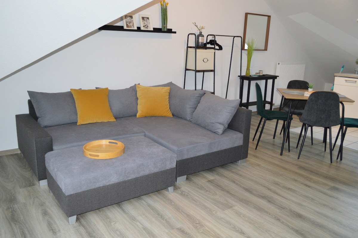 Disfruta de la combinación perfecta de naturaleza y vida urbana en nuestro elegante dúplex. Situado justo al borde del bosque, es ideal para pasear o correr, y está a solo unos minutos a pie del centro de la ciudad (15 minutos). La moderna casa de huéspedes ofrece una sala de estar abierta con una pequeña cocina americana y una acogedora zona de estar. El dormitorio en el altillo crea una sensación de amplitud. Hay disponibles opciones de fitness como yoga o una cinta de correr, así como un aparcamiento privado.