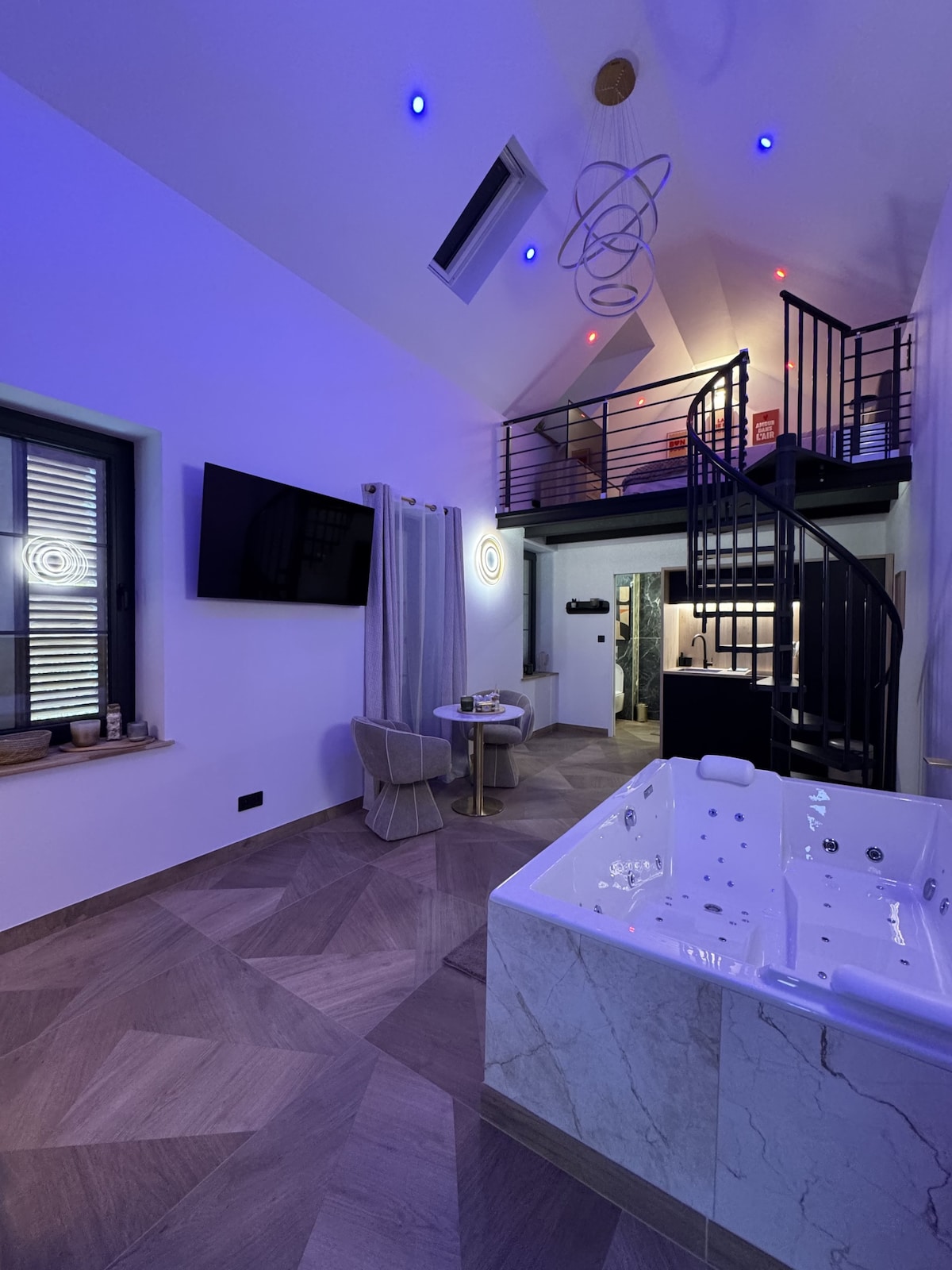 Appartement d’exception de 40 m² avec mezzanine, offrant de grands volumes. Profitez d’un espace bien-être privé avec jacuzzi haut de gamme sur mesure (jets d’eau et d’air) et sauna infrarouge avec chromothérapie. Climatisation réversible, 2 TV connectées, éclairage personnalisable. Cuisine équipée (Tassimo, four micro-ondes…). Salle de bain avec douche pluie GROHE. À 5 min à pied du centre de Dijon.