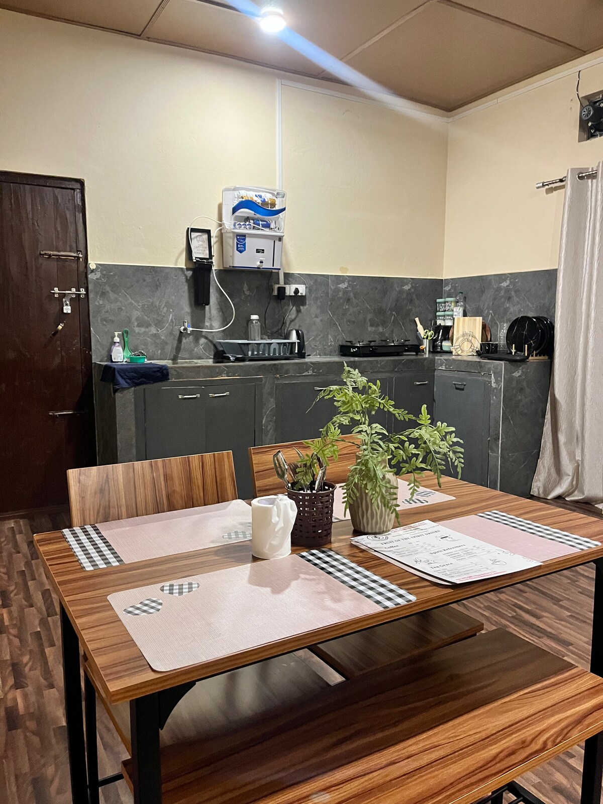 The entire first floor is for our guests with a comfortable and relaxing stay. It features a spacious 1BHK layout, offering one bedrooms, a hall, and a kitchen, designed to meet all your needs. Additionally, there is an expansive 600 sqft balcony space where guests can refresh.