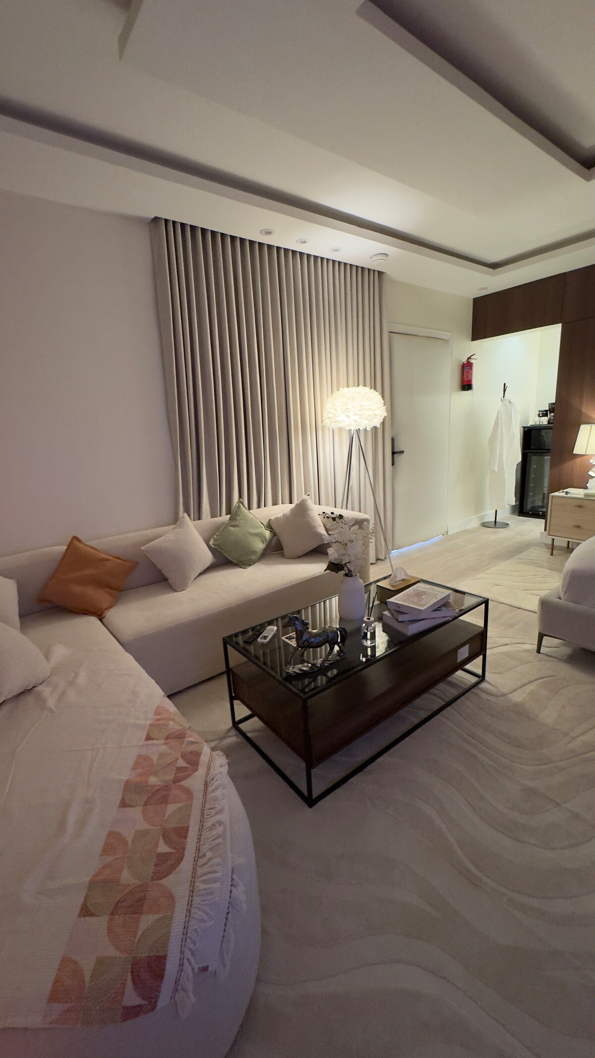 Suite Real 🏨 Ubicación: Distrito de Hittin | Riad 📍 Ubicación privilegiada: cerca de todos los servicios y eventos. 🛍️🎢 Plaza Saad: 3 min Riad Boulevard: 5 minutos. Valle de Laysen: 10 minutos. Distrito financiero: 15 minutos. Parque Riad: 13 min. Aeropuerto: 17 min. Composición de la suite: Habitación + sala de estar + cocina + baño Servicios: Televisor de 85 pulgadas, cómodos sofás. Baño totalmente abastecido: jabón, champú, acondicionador, cepillo de dientes. Iluminación ajustable. Nevera, tetera, microondas.