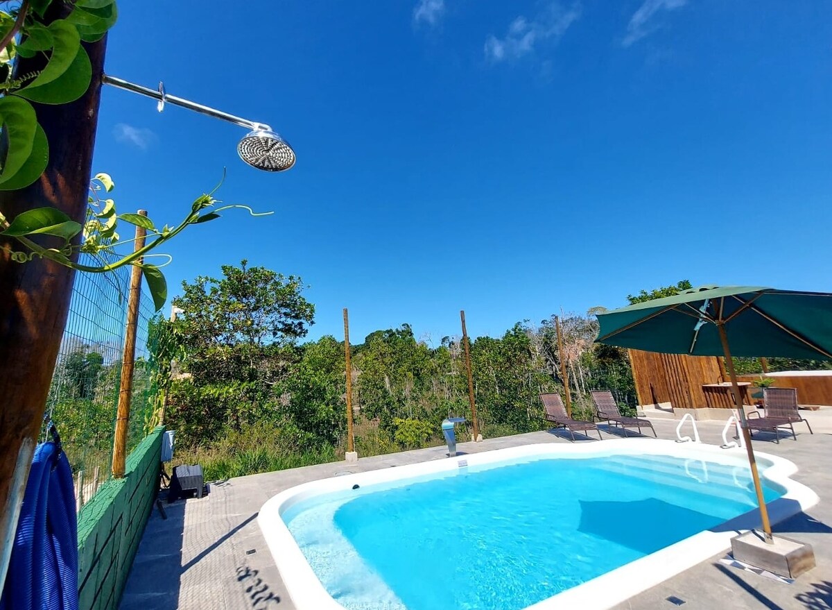 🏡 Relájate en nuestra acogedora suite con piscina. ¡Perfecto para parejas o grupos pequeños que quieran descansar, disfrutar de la naturaleza y disfrutar de días de relax en Caraíva! En nuestra suite ofrecemos sábanas y toallas para una mayor comodidad de los huéspedes. ✔️ Nuestra suite tiene baño privado. Nuestra suite tiene un área equipada para tu comodidad, con estufa, refrigerador y utensilios domésticos, diseñados para hacerte sentir como en casa durante tu estancia.