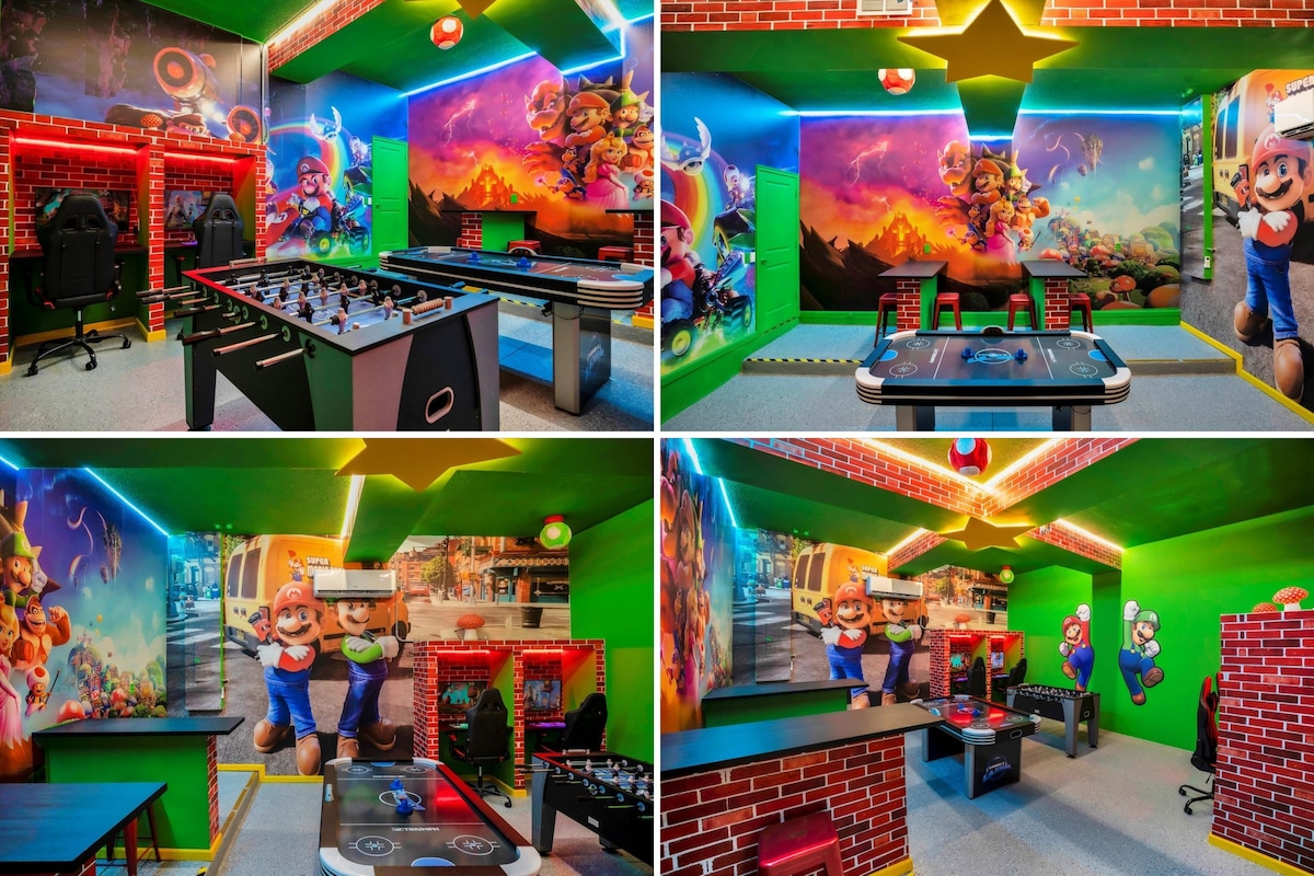 Este lugar especial está cerca de todo, por lo que es fácil planificar tu visita. • Comunidad: Paradiso Grande • 6 dormitorios/6 baños/capacidad para 16 personas. • Disney - 10 millas • SeaWorld - 1.5 millas • ICON PARK - 4 millas • Centro de convenciones - 3 millas • Universal - 7 millas - Equipo para hacer ejercicio • Piscina privada de AGUA SALADA (¡nueva!) • Sala de juegos con sala de juegos con 7500 juegos, pinball, air hockey • Cine en casa privado de $35.000 con pantalla de 133 pulgadas y vibración en los asientos. • Internet de grado empresarial • Sauna • CARGADOR PARA VEHÍCULOS ELÉCTRICOS.
