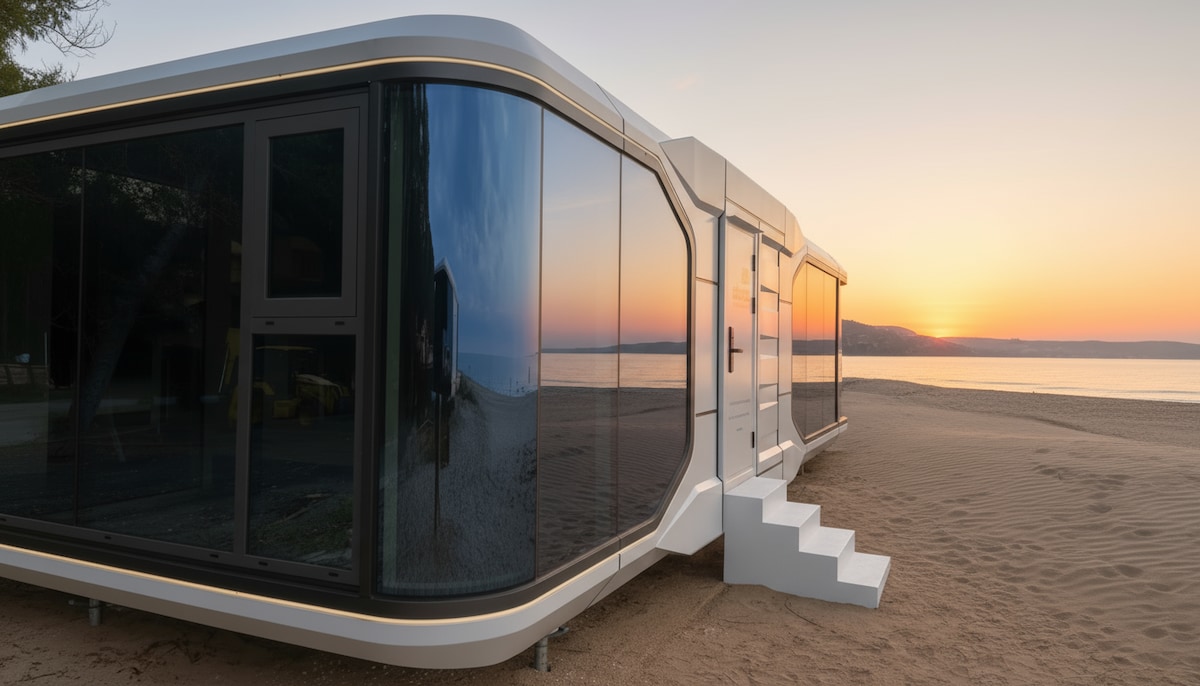 Welcome to Cosmic Capsule House Albena – a smart, eco-friendly retreat on the beach. Enjoy modern comfort in a 40 m² capsule with a bedroom, living room, home cinema, and hydromassage shower. Control lights, climate, and security by voice. Floor-to-ceiling windows reveal stunning sea and nature views. A perfect blend of innovation, comfort, and sustainability for a truly out-of-this-world stay.