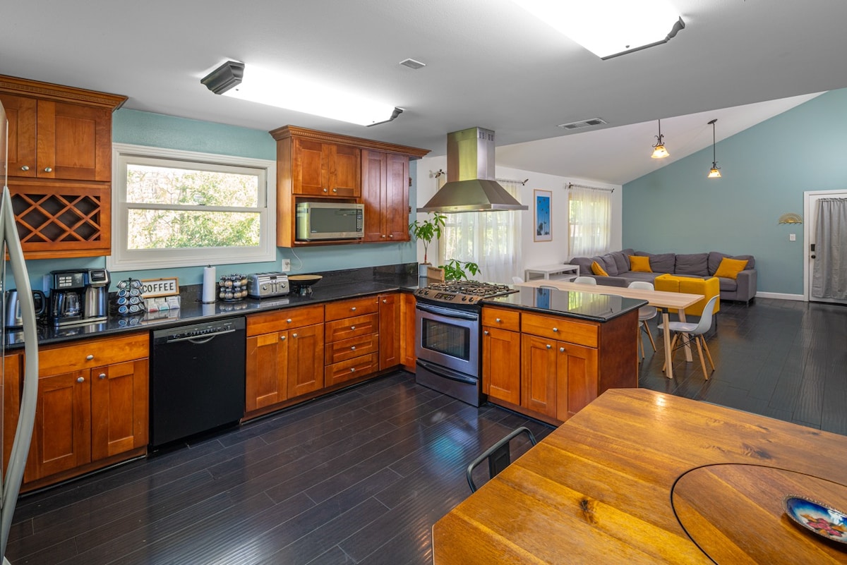 Disfruta de este moderno refugio de estilo loft lleno de luz con techos altos y amplias paredes de vidrio. Prepara las comidas en la hermosa cocina con electrodomésticos y utensilios de cocina de primera línea. Terminada en 2017, esta casa de huéspedes inspirada en la Bauhaus apareció en la lista de GQ “Los mejores alojamientos en Airbnb en Los Ángeles”. Alimentado por paneles solares, ofrece un amplio plano de piso abierto, una terraza privada y una entrada sin llave. No te preocupes, estamos cerca para garantizar tu comodidad. Disfruta del lujo moderno en esta casa de huéspedes bañada por el sol.