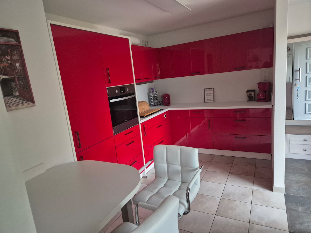 -A principios de 2024, renovamos y diseñamos de nuevo para nuestros huéspedes - Nuestro apartamento de unos 40 m² para no fumadores es para 2-3 personas. - Tiene una entrada independiente y una tranquila soleada terraza. - En el amplio salón-dormitorio hay una cama doble grande, un sofá cama, un sillón grande y TV vía satélite. - La pequeña cocina americana moderna ofrece todas las opciones de cocina. - El baño está equipado con ducha de cristal, calefacción por suelo radiante y secador de pelo.