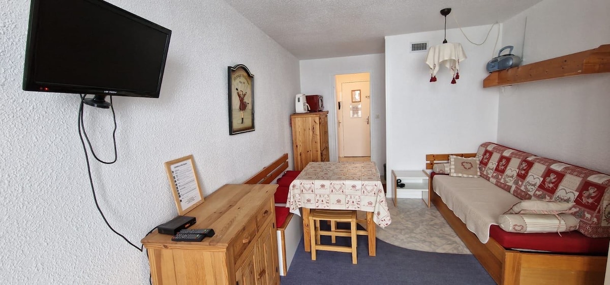 Acogedor estudio de 25 m² con acceso directo a las pistas. Ropa de cama incluida. Cama hecha.
