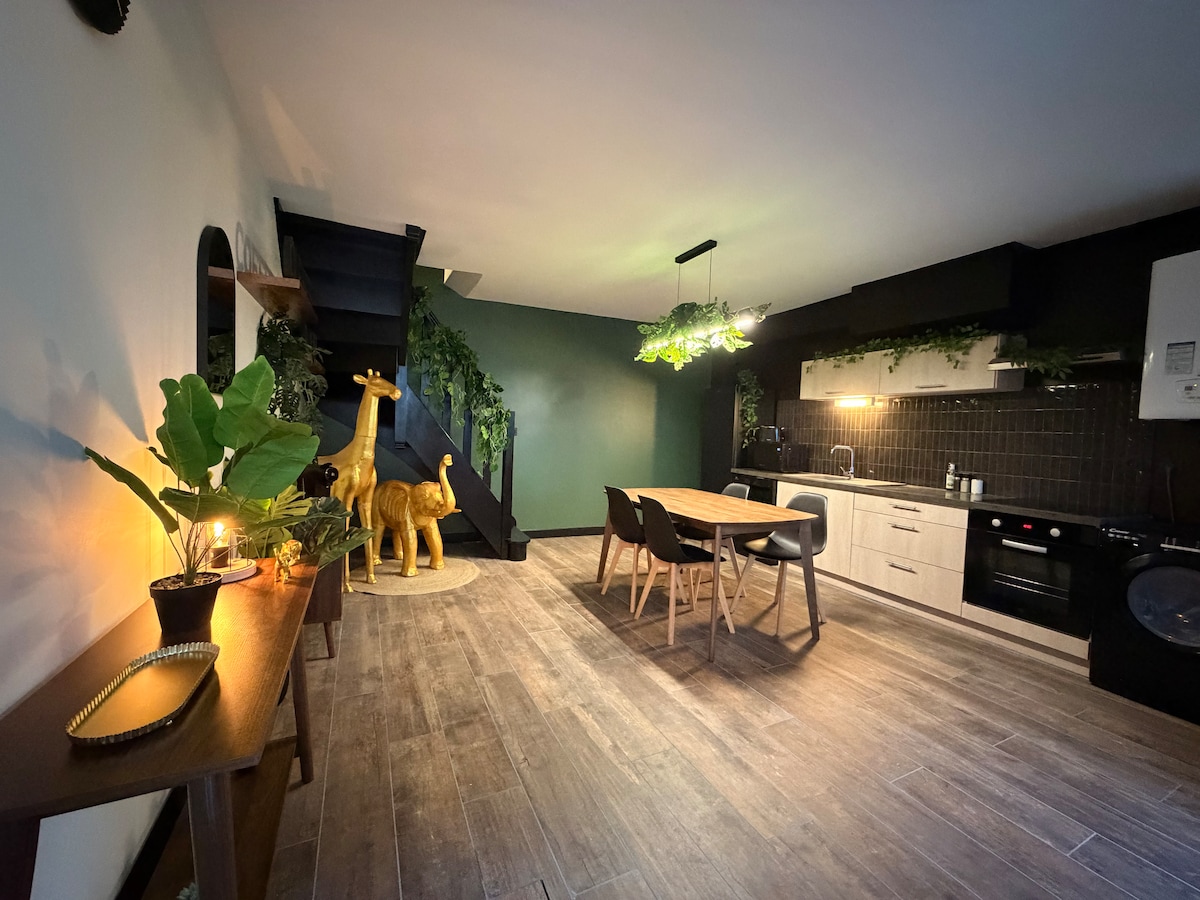 🌴 La escapada tropical: su paréntesis exótico en el corazón de Bourgoin-Jallieu 🌴 Este alojamiento único e inmersivo está situado en el centro de la ciudad, a 2 pasos de la zona peatonal. Renovada con esmero en un universo jungla chic, esta casa de 63 m² ha sido diseñada para sacarlo de la vida cotidiana. En medio de plantas y animales, esta casa adosada de 2 pisos contiene todas las comodidades necesarias para alojar hasta 4 personas. El alojamiento se encuentra a 30 minutos de Lyon y a 40 minutos de Grenoble.