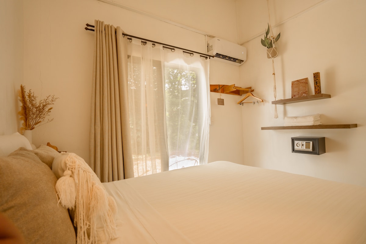 habitación acogedora para viajeros solos en un hotel boutique boho