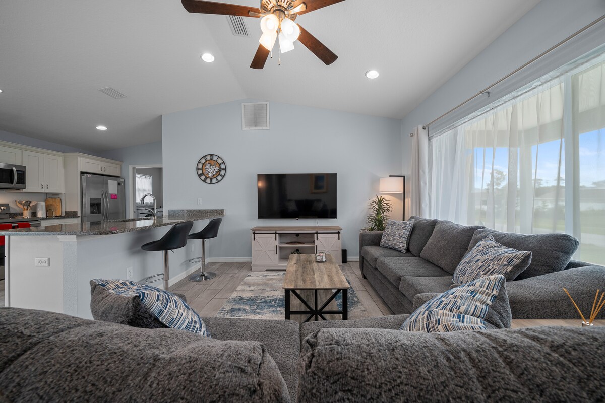 Te damos la bienvenida a tu tranquilo refugio sobre el agua. Si tú o tu grupo están visitando los Villages, o simplemente necesitan una escapada tranquila para recargar energías, ¡este es el lugar ideal!¡Hay algo para todos! Practica paddleboard o kayak (se proporcionan) por el hermoso canal hasta cualquiera de los dos lagos. Disfruta de tu café de la mañana o de tu cóctel de la noche en la naturaleza, en el muelle. Trae tu barco/moto acuática o alquila uno en Eaton’s Beach Aquatic Sports; también ofrecen cruceros al atardecer y taxi acuático hasta el restaurante Eaton’s Beach directamente desde nuestro muelle.