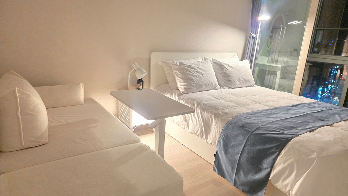STAY Seojeong ¡Descuento por estadía prolongada! ¡Estacionamiento gratuito! ¡Tonos blancos! ¡Piso 15 con vista panorámica! ¡Buena iluminación natural! ¡Ambiente agradable! ¡Vistas nocturnas evocadoras!