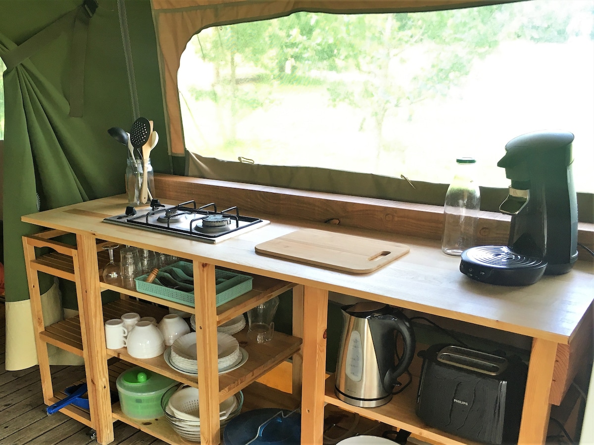 Una cómoda tienda de safari escondida en medio del bosque, en nuestro mini camping de 2 parcelas. Fácil acceso a rutas de senderismo, pistas de bicicleta de montaña, canoa, rincones de baño en el río, alrededor de los bonitos pueblos de Périgord vert . Piscina de 4 x 10 m y sanitarios en el lugar con lavadora, electricidad en la tienda, cocina con refrigerador. Alojamiento ideal para 2-4 personas. Atención: se proporcionan sábanas, pero no toallas
