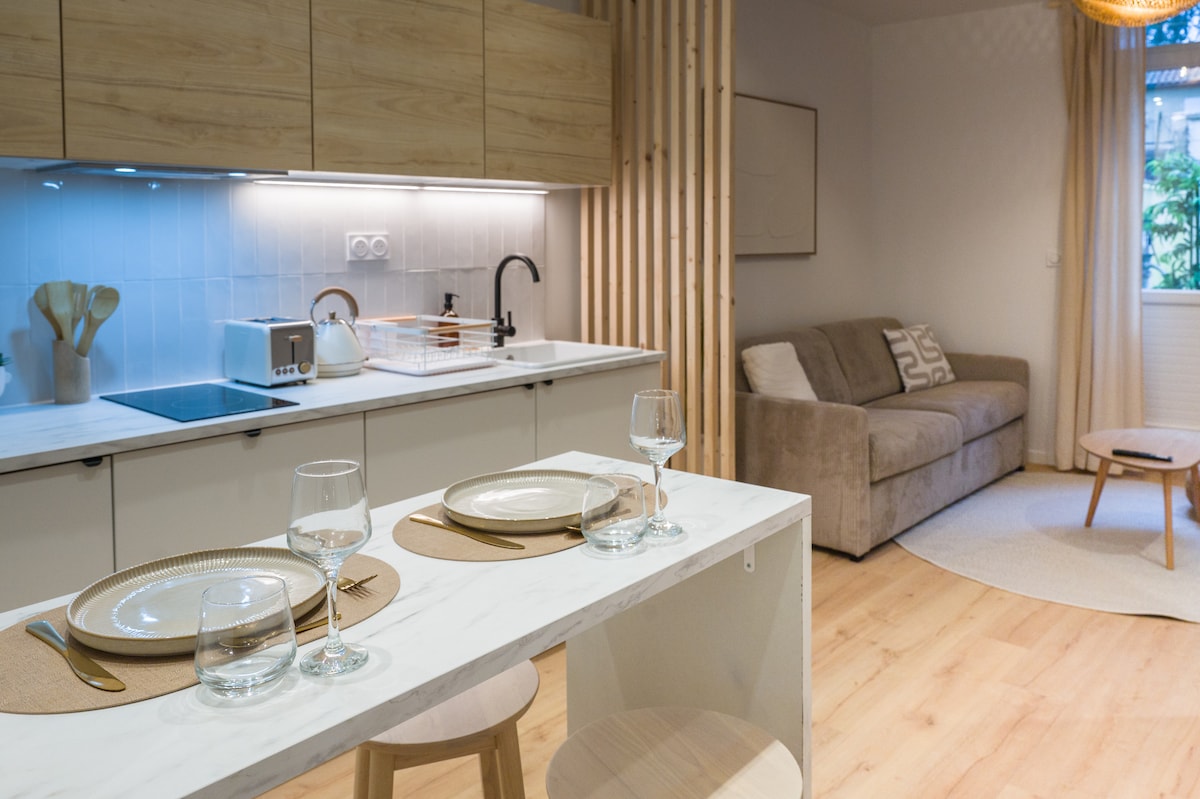 Bienvenido a este elegante y acogedor nido de cine en el corazón de Bergerac, a pocos pasos del centro histórico, restaurantes y muelles. Disfrute de un ambiente cálido con proyección de pantalla grande, ideal para una noche de cine después de un día de turismo o trabajo. El apartamento, tranquilo y cuidadosamente amueblado, cuenta con una cocina equipada, una cómoda zona de oficina y una terraza. Puede alojar hasta 4 viajeros.