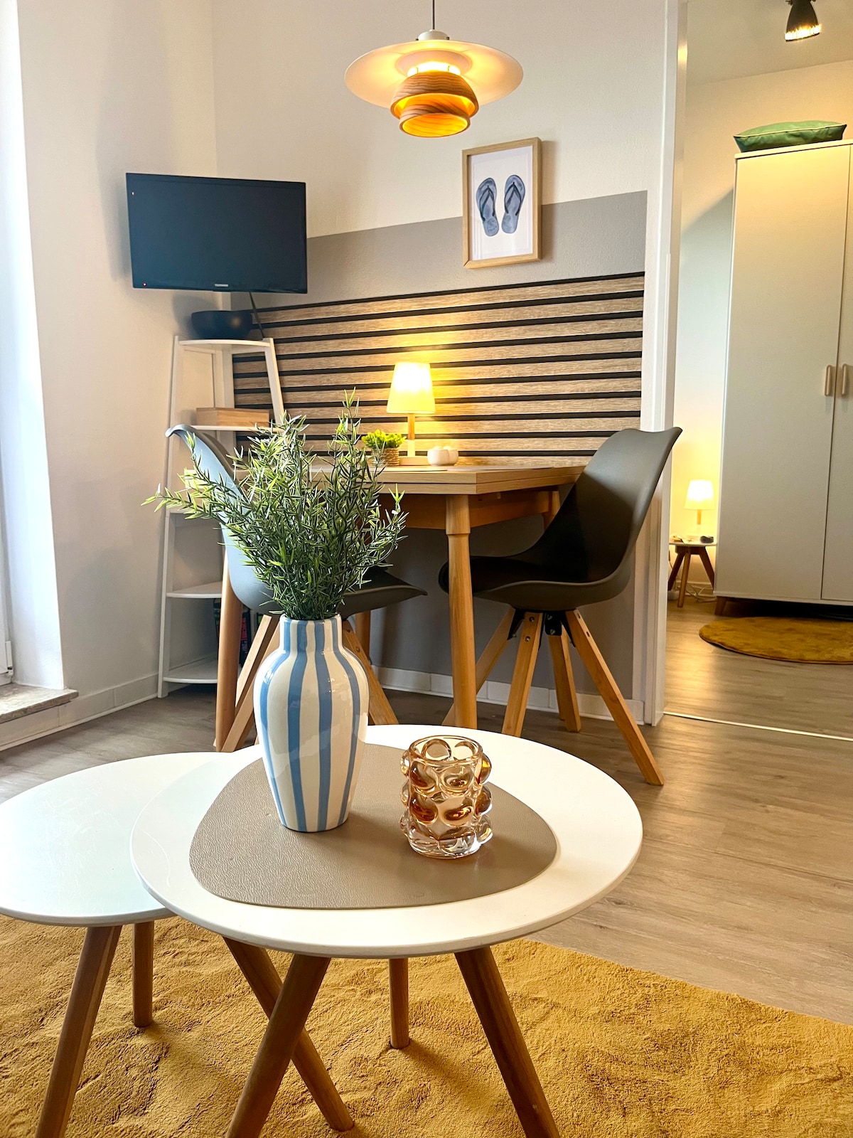 En el corazón del centro de la ciudad de Emder, con vistas al Ratsdelft, se encuentra nuestro apartamento de 1 habitación recién renovado y con gran atención a los detalles y equipado. Nuestro objetivo es ofrecer a nuestros huéspedes todas las comodidades que contribuyen a una estancia agradable y relajante en 30 m². Pequeño pero agradable presenta nuestro apartamento con el algo especial en un ambiente acogedor.