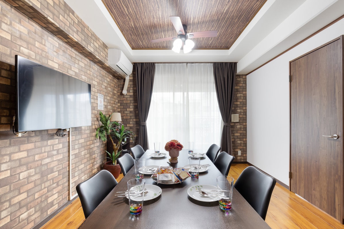 Bienvenido a este espacioso alojamiento en el corazón de Osaka.La casa tiene 120㎡ de espacio, 4 dormitorios, 5 camas dobles + 2 camas individuales, puede alojar hasta 12 huéspedes cómodamente, perfecta para viajes familiares, amigos, viajes de varias personas o pequeñas reuniones. En comparación con los pequeños departamentos que se encuentran comúnmente en el centro de la ciudad, este departamento es más adecuado para grupos.La casa tiene una gran sala de estar + gran cocina, 3 baños, 2 baños, incluso si viajas con muchas personas, puedes reducir el problema de hacer cola para lavarse por la mañana y por la noche, lo que hace que sea más fácil y más cómodo vivir. Además del diseño espacioso y práctico, la casa también tiene un solárium en el ático y un amplio espacio privado para bañarse en el patio, en el animado centro de Osaka, también puedes tener una rara sensación de relajación y ambiente vacacional.Ya sea que regreses de un viaje de un día para descansar o te reúnas con familiares y amigos por la noche, es una experiencia más experiencial. La ubicación también es muy conveniente: 🚇 La estación de metro de Nagahoribashi está a unos 5 minutos a pie. 🛍️ Calle comercial Shinsaibashi, Dotonbori a unos 8 minutos a pie 🚌 A unos 8 minutos a pie de la parada de autobús del aeropuerto de Kansai 🛒 La tienda de conveniencia está a unos 30 segundos caminando, el supermercado está a unos 2 minutos caminando Ya sea la primera vez que visitas Osaka o viajas con un grupo, este departamento puede satisfacer las necesidades de ubicación conveniente, espacio amplio, alojamiento cómodo para muchas personas y experiencias únicas. Si es necesario, también podemos ayudarte con el traslado desde el aeropuerto o con consejos de viaje en auto para que tu viaje sea más fácil. ¡Les damos la bienvenida a todos para que experimenten el encanto de Osaka y esperamos crear sus recuerdos!