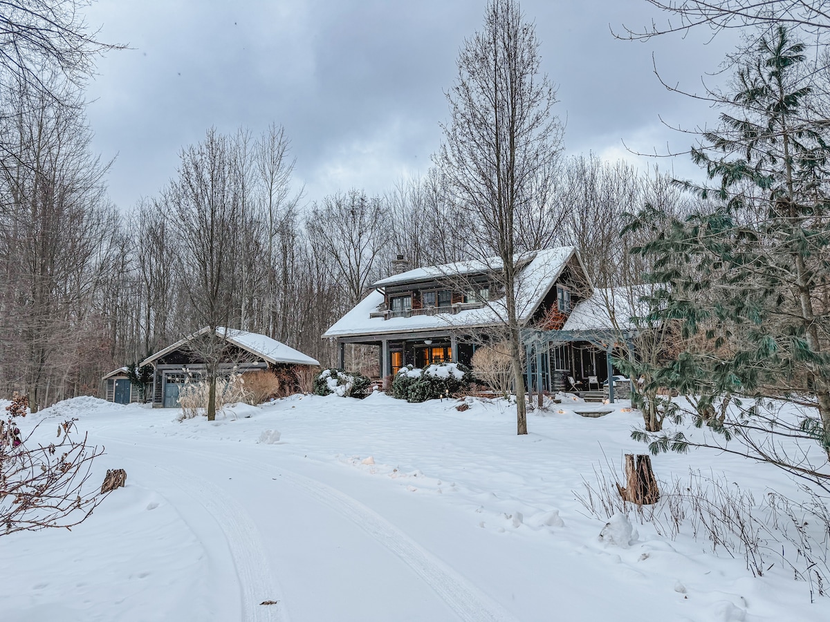 Rustic meets contemporary. Beautifully remodeled cabin, barn board, hand hewn & skinned logs. Craftsman touches throughout. More than a place to lay your head Central air wifi cable Located on 20 acres with our other cabins. Full kitchen Close to Saugatuck/Douglas & Lake MI., but the backyard will make you feel far from it all Private wooded trail to the Brewery Low key, organic, farm setting. Our goal is to provide you with a relaxing getaway and we are a phone call or knock on the door away.